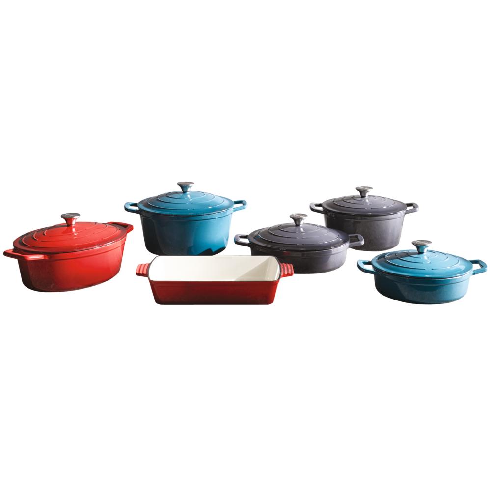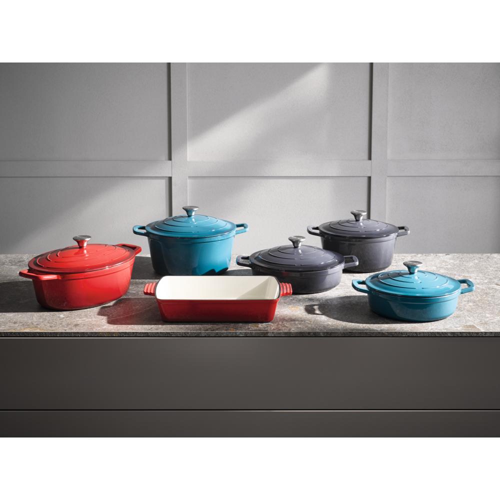 5 STARS Gusseisenbräter mit Deckel - 2,5 l - (Ø 25 x 7 cm)- Rot