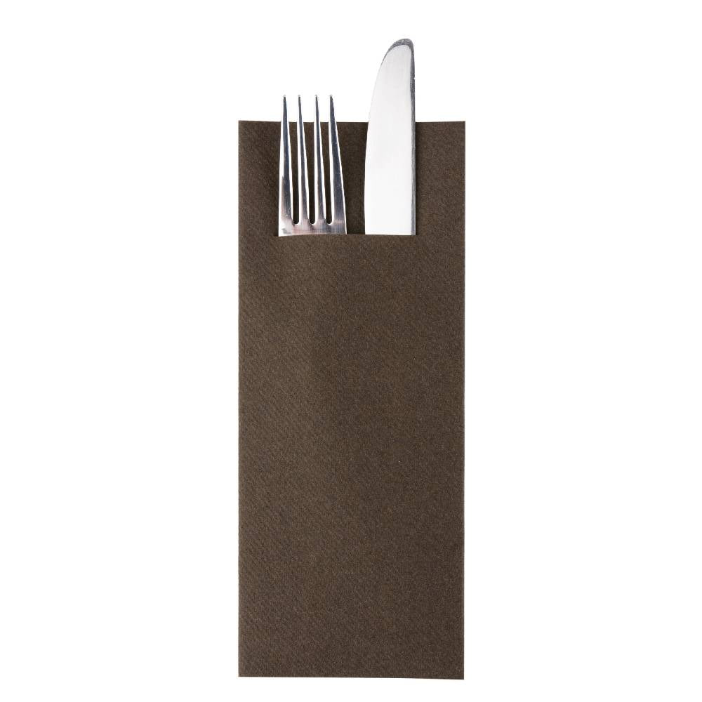 AIRLAID Bestecktaschen - 40 x 33 cm - 1/8 Falz - Braun (75 Stück)