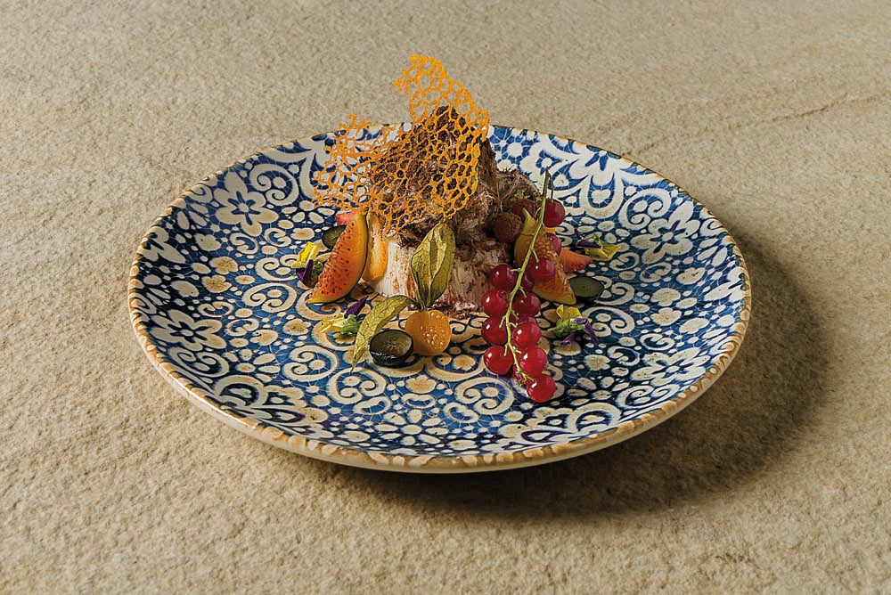 Strukturierte Oberflächen, handgemachter Chrakter und mauretanisches Muster - mit der Serie Alhambra serviert man trendgemäß! Mediterrane Gerichte, Tapas, Antipasti sowie Dips lassen sich mit den verschiedenen Schälchen, Tellern und Platten optimal präsentieren. Die erhabene Struktur der Oberfläche sorgt für ein zusätzliches Design-Feature. Alle Artikel haben eine erhöhte Kantenschlagfestigkeit, bis auf die Schrägschüssel. Stapelbar, mikrowellen- und spülmaschinenfest.