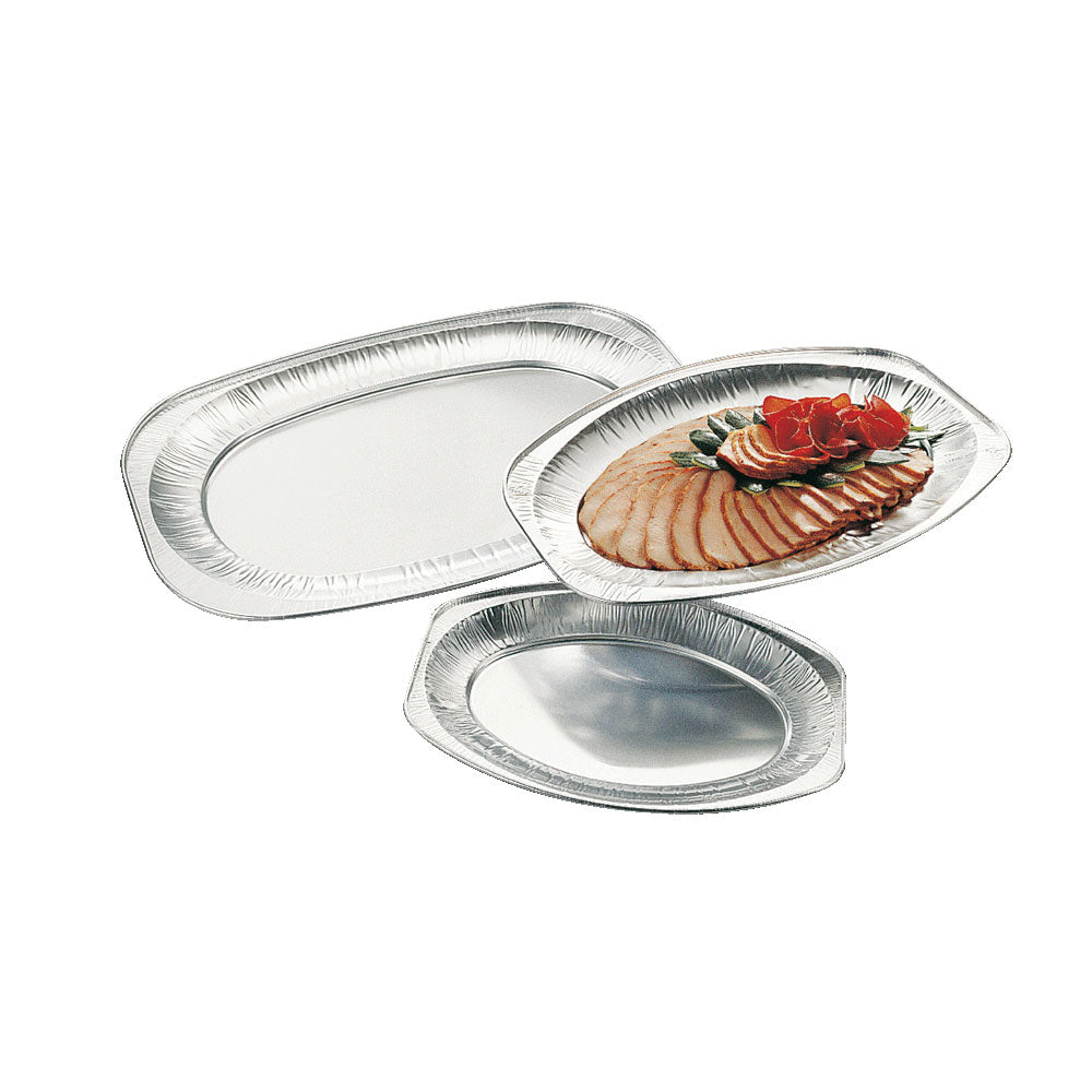 - attraktive ovale, silberne Einweg-Alu-Partyplatte