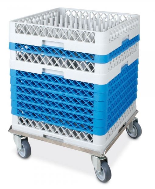Für den leichten und sicheren Transport von Gläser- und Geschirrkörben. Der unten offene Aluminium-Rahmen ermöglicht schnelles Trocknen und verhindert Kondenswasserbildung. Mit vier verzinkten Lenkrollen und großen, laufruhigen Gummirädern. Tragkraft jeweils 250 kg.