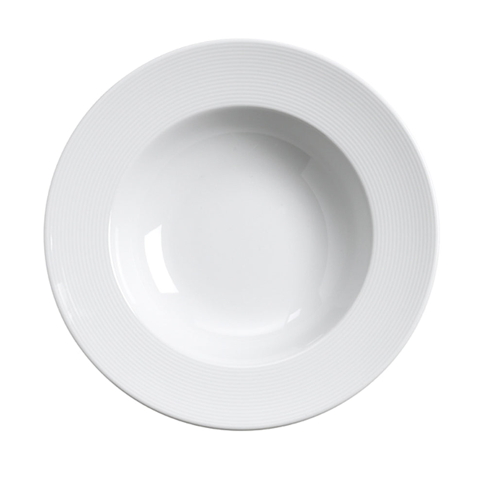 Mit unserem tiefen Teller der Serie "Arena" mit einem Durchmesser von 23,5 cm lassen sich unterschiedliche Speisen anrichten.