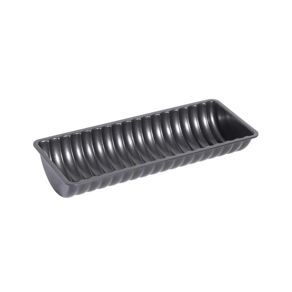 Backform "Rehrücken" aus 0,6 mm starkem Stahl. Mit PTFE-Antihaftbeschichtung, daher nicht spülmaschinengeeignet. Die Größe der Backform ist 30 x 11 x 5 cm.