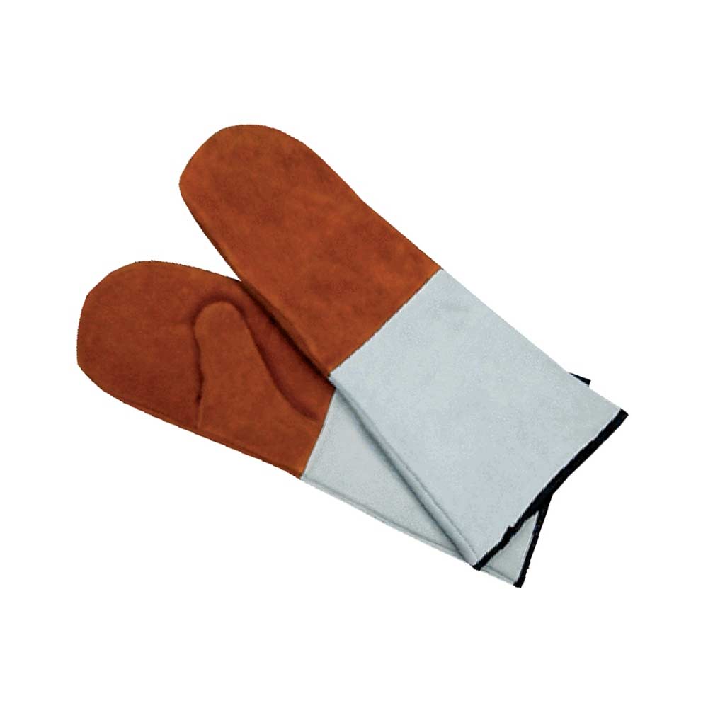 Fäustlinge aus feinem Spaltleder mit langer Stulpe.Innenfutter aus Fleece, hitzebeständig bis + 250 °C. Obermaterial: 100% Echtleder, Futter: 100% Baumwolle.