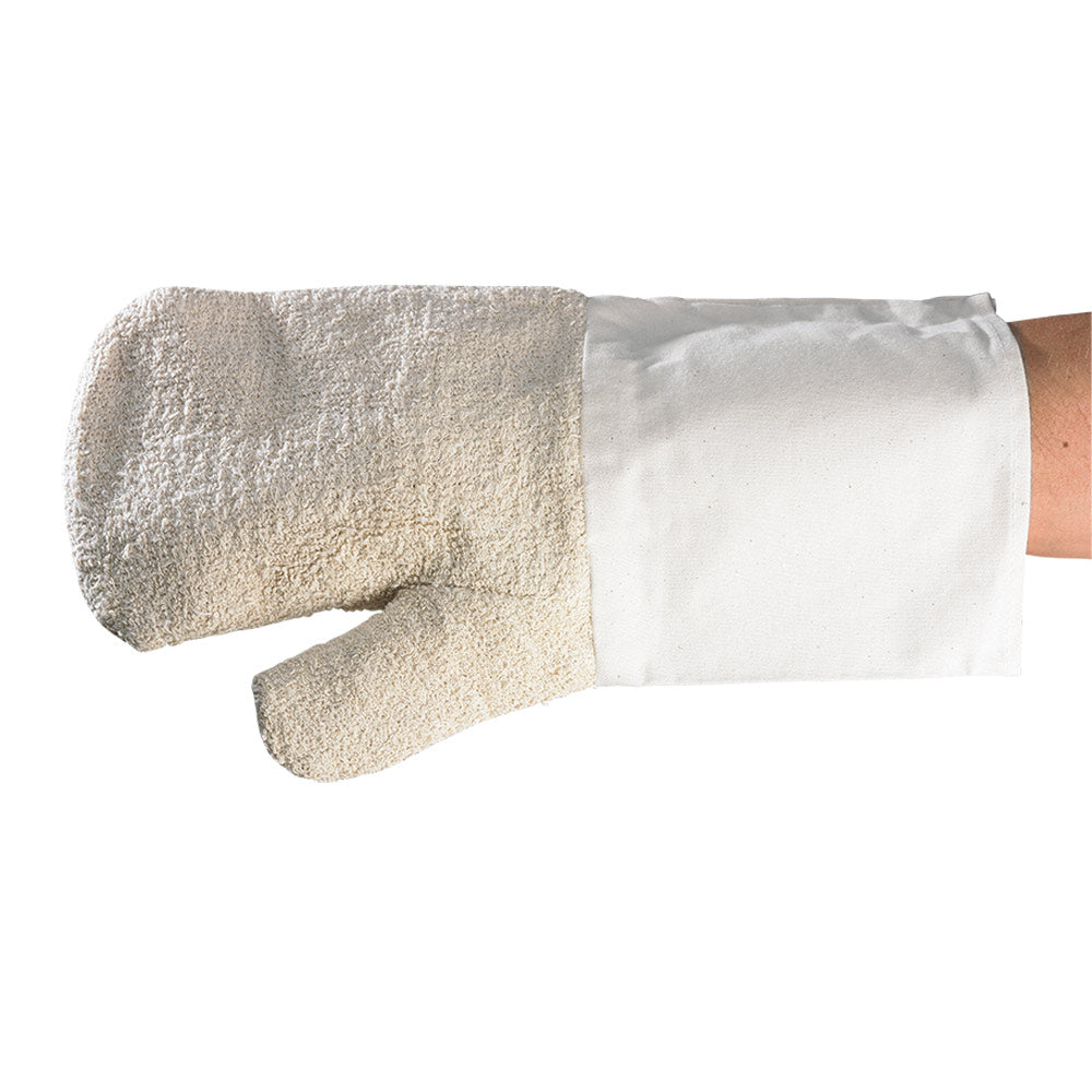 Diese schweren Fäustlinge bestehen aus doppelter, feiner Baumwollschlinge mit einer Stulpe aus Canvas. Hitzebeständig bis 250° C - waschbar bis max. 40° C, Universalgröße. In der Liefereinheit ist 1 Paar enthalten.