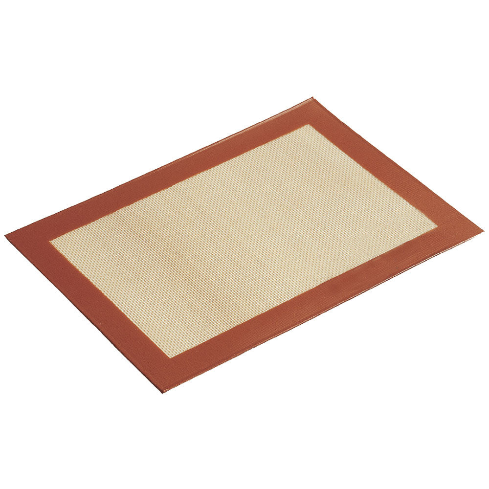 Diese langlebige Matte für Bleche GN 1/1 aus silikonbeschichtetem Glasfaser-Gewebe ersetzt das Backpapier. Mit besten Antihafteigenschaften und einer hohen Temperaturbeständigkeit von -40° bis +300° C. Einfache Reinigung mit heißem Wasser, Spülmittel und einem weichen Schwamm. Nicht knicken oder als Schneidunterlage verwenden. Wir empfehlen den Einsatz auf perforierten Backblechen oder Gittern. Größe 52 x 31 cm.
