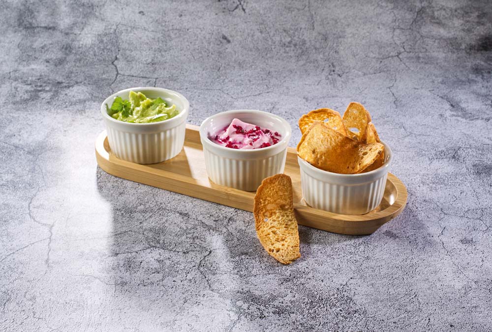 Schöne Bambus-Tabletts für die stilvolle Präsentation von Brot und Dips, Vorspeisen- und Dessertvariationen sowie Tapas.