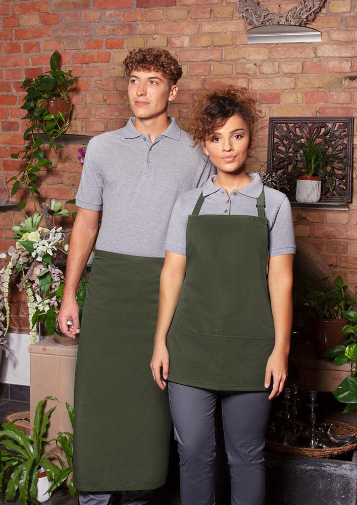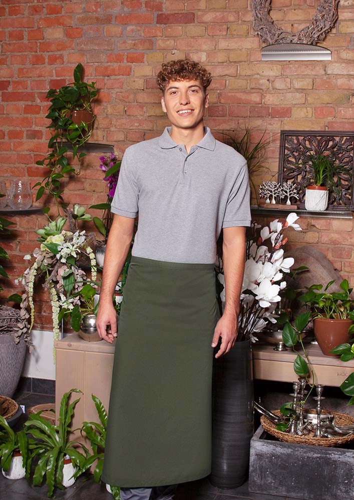 Bistroschürze aus Mischgewebe (65% Polyester / 35 % Baumwolle) mit durchgehendem Band aus Schürzenstoff und Nahtsicherung. Zertifiziert und geprüft gemäß STANDARD 100 by OEKO-TEX®. · Material: 65% Polyester, 35% Baumwolle (215 g/m²) · Größe 100 x 75 cm · Normalwaschgang bis max. 60 °C, mäßig heiß bügeln bis max. 150° C (Dampf erlaubt), nicht bleichen oder im Wäschetrockner trocknen. Professionelle Trockenreinigung möglich
