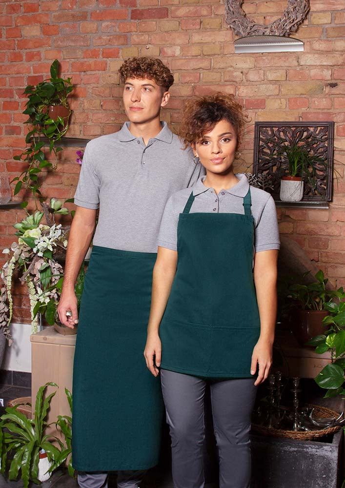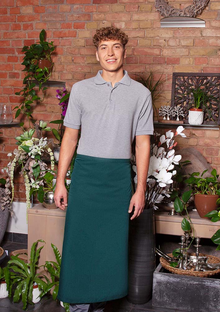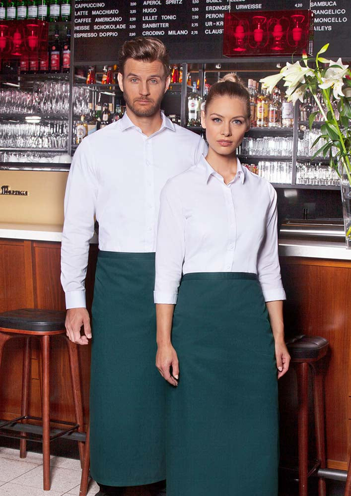 Bistroschürze aus Mischgewebe (65% Polyester / 35 % Baumwolle) mit durchgehendem Band aus Schürzenstoff und Nahtsicherung. Zertifiziert und geprüft gemäß STANDARD 100 by OEKO-TEX®. · Material: 65% Polyester, 35% Baumwolle (215 g/m²) · Größe 100 x 75 cm · Normalwaschgang bis max. 60 °C, mäßig heiß bügeln bis max. 150° C (Dampf erlaubt), nicht bleichen oder im Wäschetrockner trocknen. Professionelle Trockenreinigung möglich