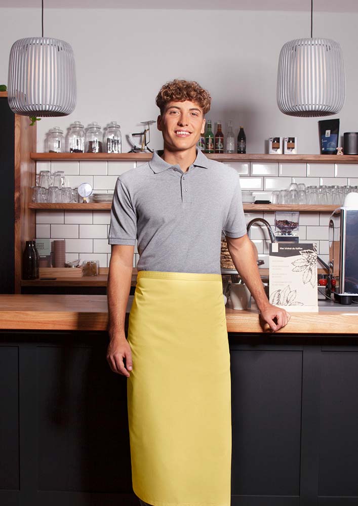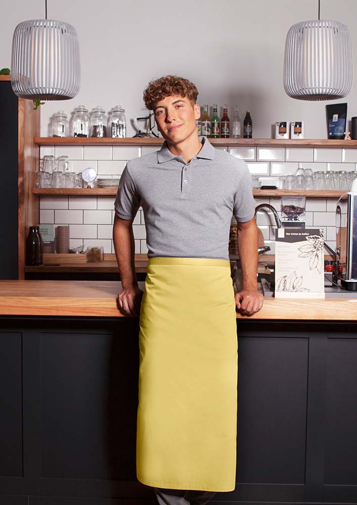 Bistroschürze aus Mischgewebe (65% Polyester / 35 % Baumwolle) mit durchgehendem Band aus Schürzenstoff und Nahtsicherung. Zertifiziert und geprüft gemäß STANDARD 100 by OEKO-TEX®. · Material: 65% Polyester, 35% Baumwolle (215 g/m²) · Größe 100 x 75 cm · Normalwaschgang bis max. 60 °C, mäßig heiß bügeln bis max. 150° C (Dampf erlaubt), nicht bleichen oder im Wäschetrockner trocknen. Professionelle Trockenreinigung möglich