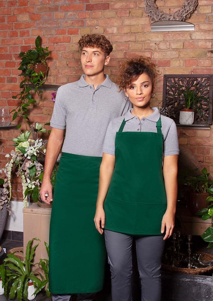 Bistroschürze aus Mischgewebe (65% Polyester / 35 % Baumwolle) mit durchgehendem Band aus Schürzenstoff und Nahtsicherung. Zertifiziert und geprüft gemäß STANDARD 100 by OEKO-TEX®. · Material: 65% Polyester, 35% Baumwolle (215 g/m²) · Größe 100 x 75 cm · Normalwaschgang bis max. 60 °C, mäßig heiß bügeln bis max. 150° C (Dampf erlaubt), nicht bleichen oder im Wäschetrockner trocknen. Professionelle Trockenreinigung möglich