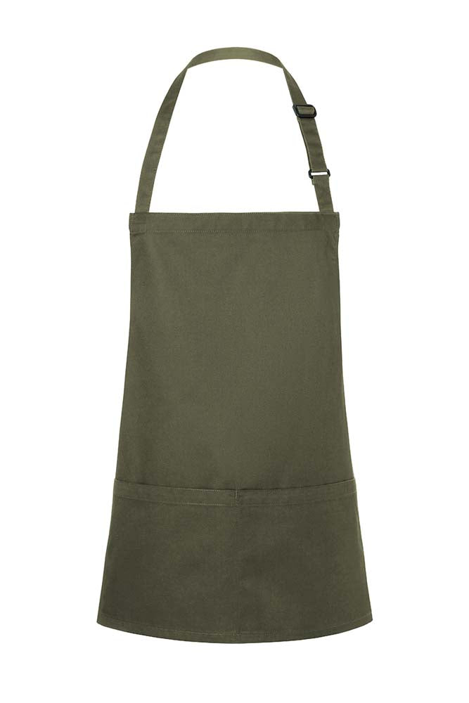 Kurze Latzschürze der Serie "Basic" mit Schnalle und Tasche. Bänder aus Schürzenstoff - zusätzliche Strapazierfähigkeit durch Nahtsicherung an den Schürzenbändern. Die Latzbandlänge kann einfach und flexibel durch eine Schnalle eingestellt werden (Länge bis 70 cm). Mit aufgesetzter Tasche mit zwei Fächern (40 x 20 cm). Zertifiziert und geprüft gemäß STANDARD 100 by OEKO-TEX®. · Material: 65% Polyester, 35% Baumwolle (215 g/m²) · Größe 75 x 60 cm · Normalwaschgang bis max. 60 °C, mäßig heiß bügeln bis max. 150° C (Dampf erlaubt), nicht bleichen oder im Wäschetrockner trocknen. Professionelle Trockenreinigung möglich