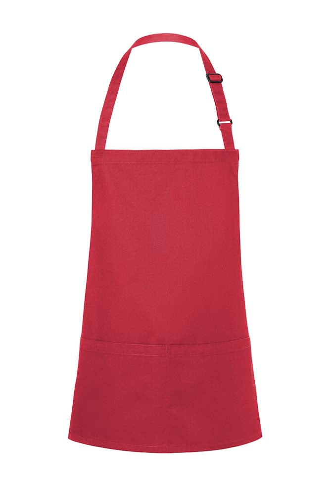 Kurze Latzschürze der Serie "Basic" mit Schnalle und Tasche. Bänder aus Schürzenstoff - zusätzliche Strapazierfähigkeit durch Nahtsicherung an den Schürzenbändern. Die Latzbandlänge kann einfach und flexibel durch eine Schnalle eingestellt werden (Länge bis 70 cm). Mit aufgesetzter Tasche mit zwei Fächern (40 x 20 cm). Zertifiziert und geprüft gemäß STANDARD 100 by OEKO-TEX®. · Material: 65% Polyester, 35% Baumwolle (215 g/m²) · Größe 75 x 60 cm · Normalwaschgang bis max. 60 °C, mäßig heiß bügeln bis max. 150° C (Dampf erlaubt), nicht bleichen oder im Wäschetrockner trocknen. Professionelle Trockenreinigung möglich