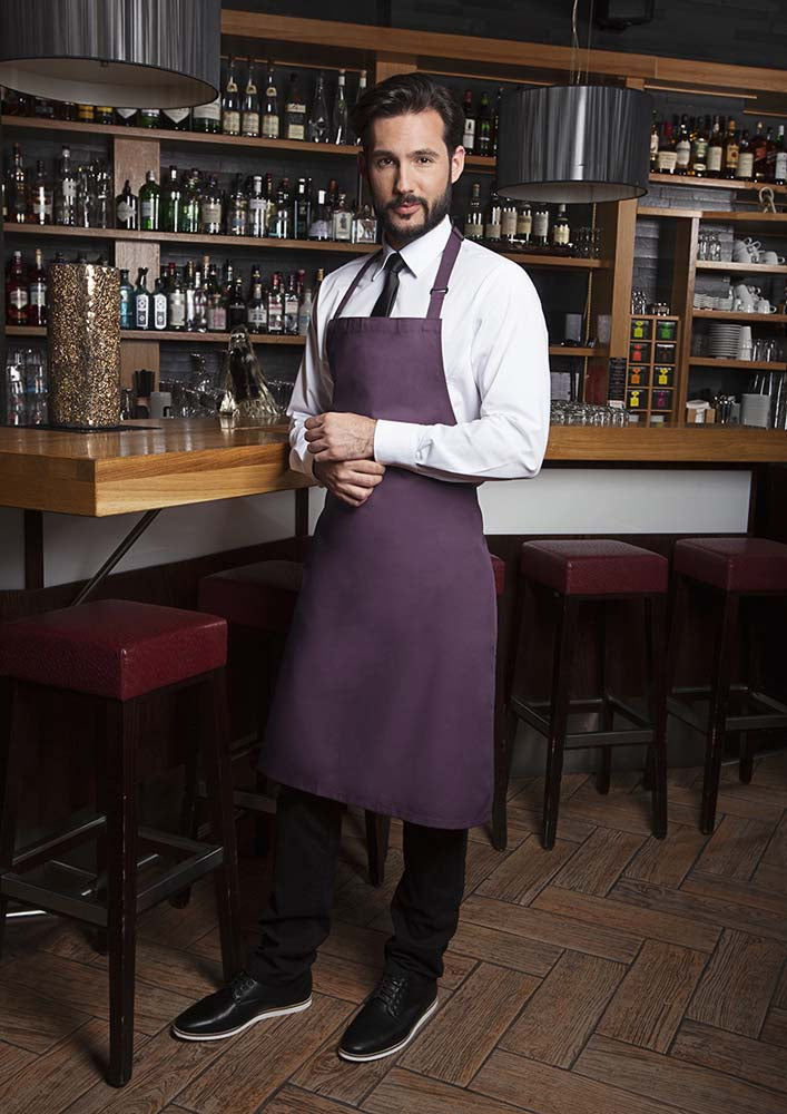 Latzschürze mit Schnalle der Serie "Basic". Latzband aus Schürzenstoff, mit Nahtsicherung, mit Schnalle zum stufenlosen Einstellen der Länge bis 70 cm. Zertifiziert und geprüft gemäß STANDARD 100 by OEKO-TEX®. · Material: 65% Polyester, 35% Baumwolle (215 g/m²) · Größe 75 x 90 cm · Normalwaschgang bis max. 60 °C, mäßig heiß bügeln bis max. 150° C (Dampf erlaubt), nicht bleichen oder im Wäschetrockner trocknen. Professionelle Trockenreinigung möglich
