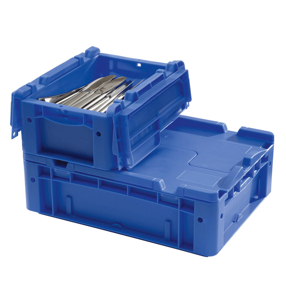 Ein weiterer Vorteil der kleinen Besteck-Transportbox ist ihre Stapelbarkeit im Verbund mit unserer Geschirr-Transportbox. Dies ermöglicht eine effiziente Nutzung des verfügbaren Raums und erleichtert den Transport erheblich, insbesondere bei größeren Veranstaltungen oder im Catering-Bereich.