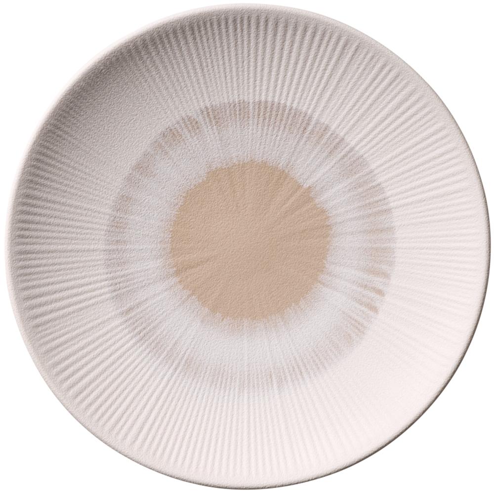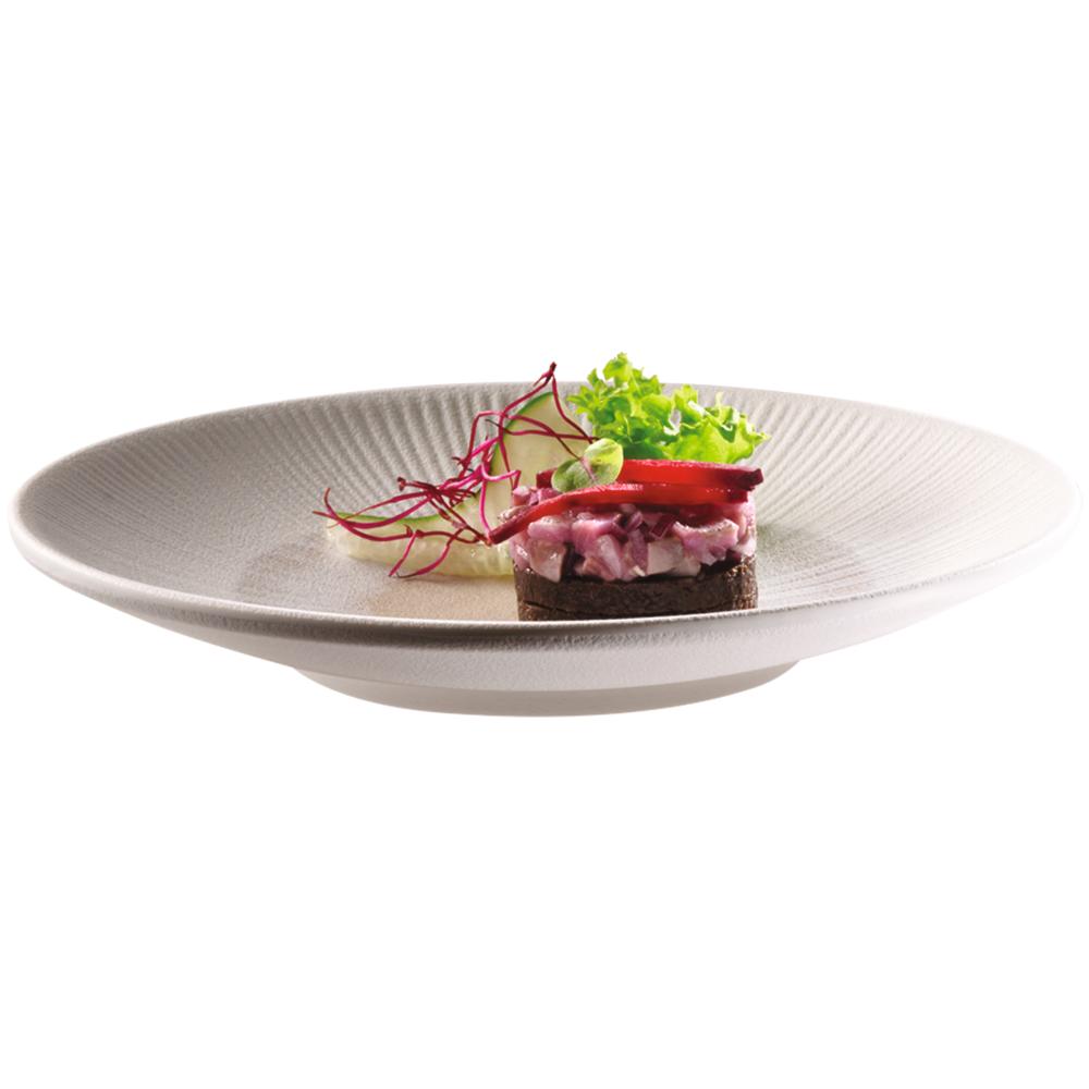 Das elegante Weiß-Beige-Farbspiel und die fein geriffelte Oberfläche verleihen dem Teller eine natürliche, moderne Optik mit edler Haptik. Das namensgebende, zarte BKUSH-Muster sorgt für einen besonderen Hingucker auf jedem gedeckten Tisch ideal für Desserts, Vorspeisen, Snacks oder den Gruß aus der Küche.
