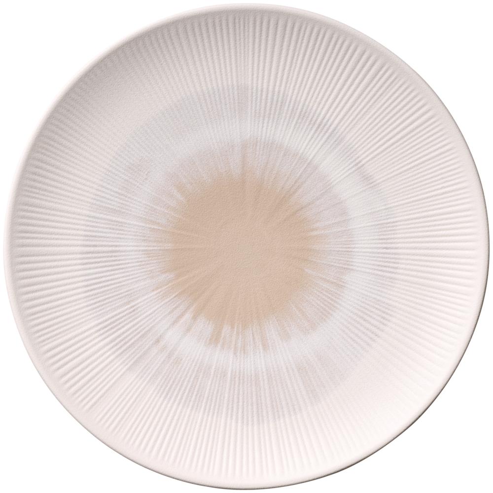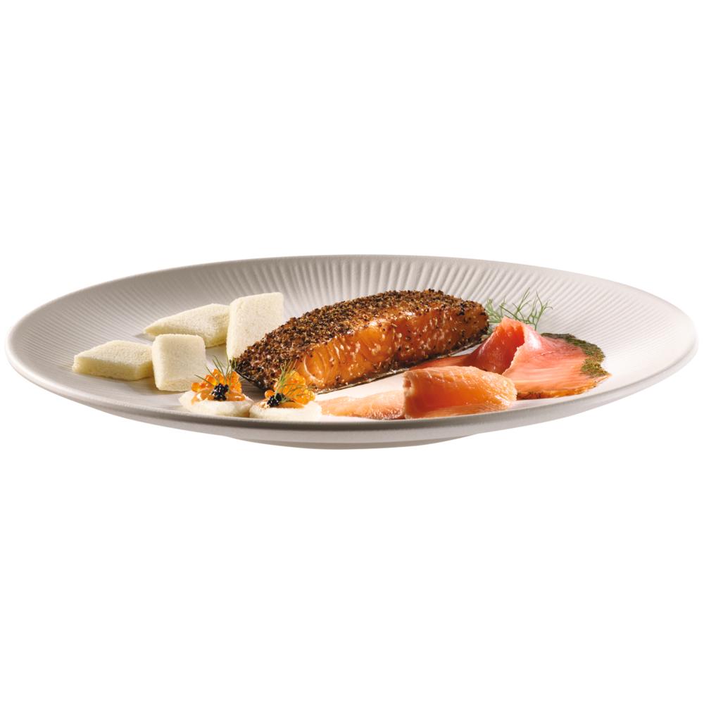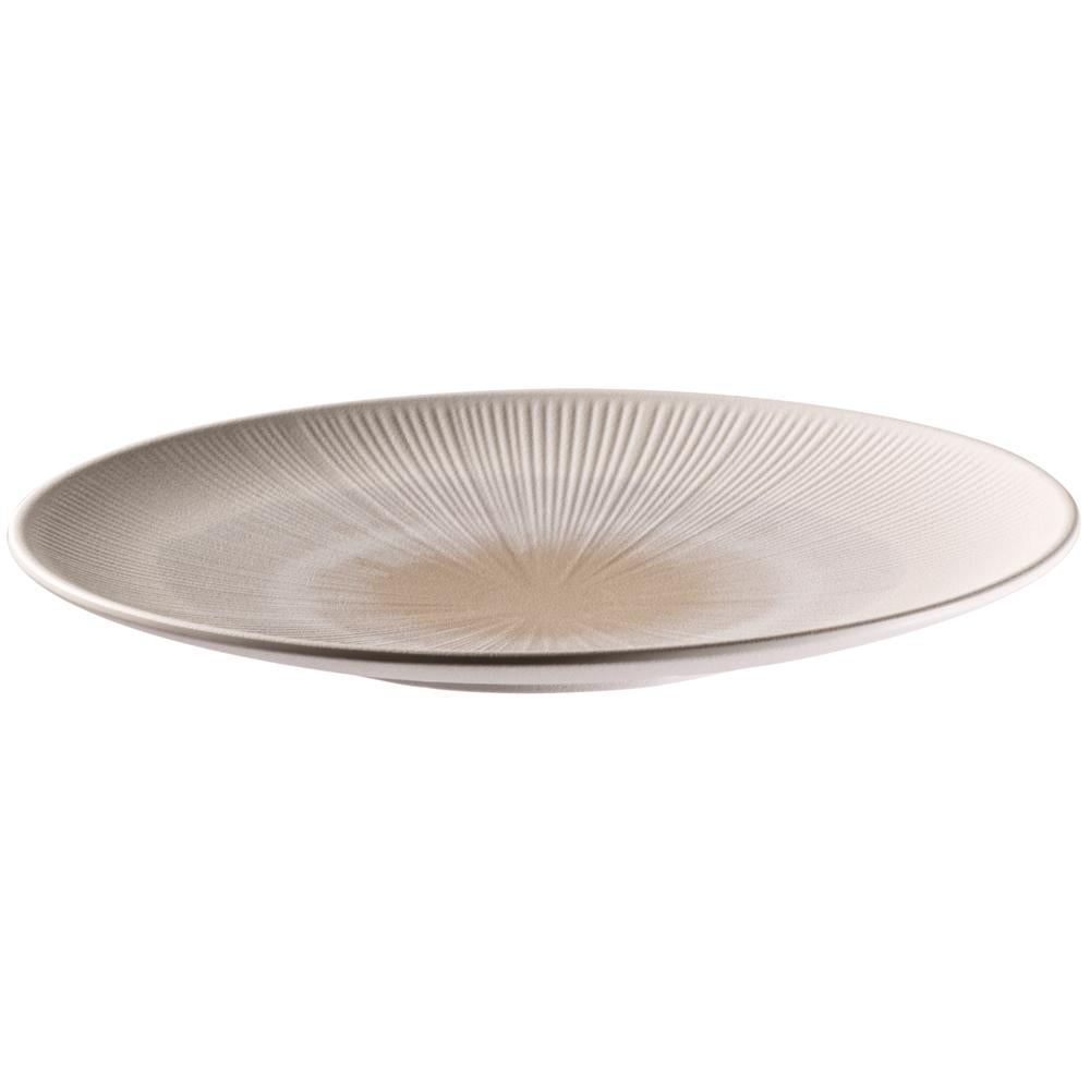 Die elegante Kombination aus Weiß-Beige-Ton und der geriffelten Struktur verleiht dem Teller eine hochwertige, natürliche Ausstrahlung. Das dezente, charakteristische BLUSH-Muster rundet das Design modern ab ideal für stilvolle Darbietungen von Speisen in gehobenen Gastronomiebetrieben.
