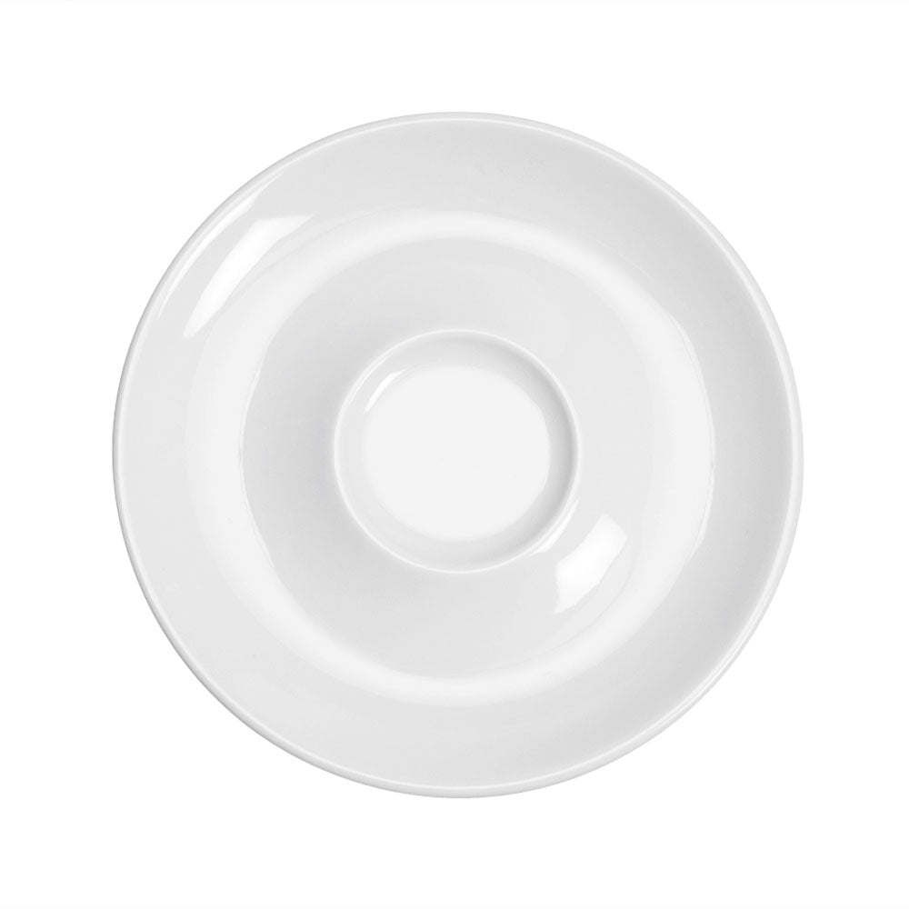 Die Cappuccino-/Kaffee-Untere Bola hat einen Durchmesser von 14,5 cm. Sie besteht aus feinem Hotelporzellan mit reinweißem Scherben und bester Glasur. Die Untertasse ist sowohl spülmaschinen-, als auch mikrowellenfest.