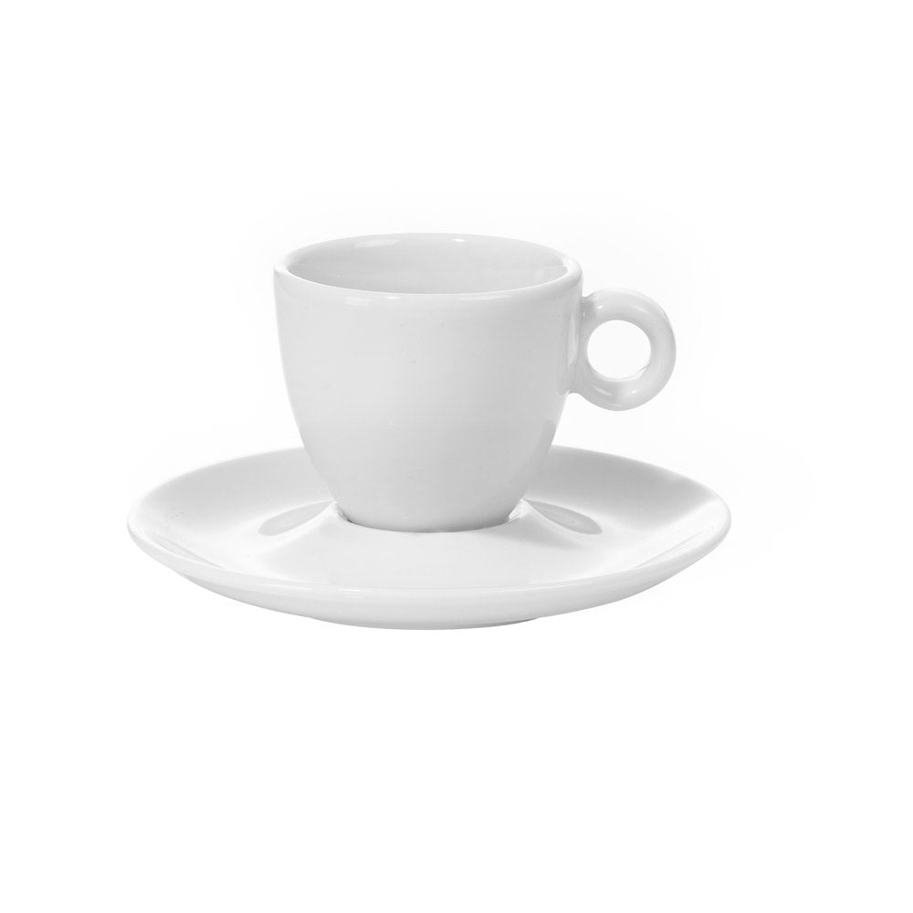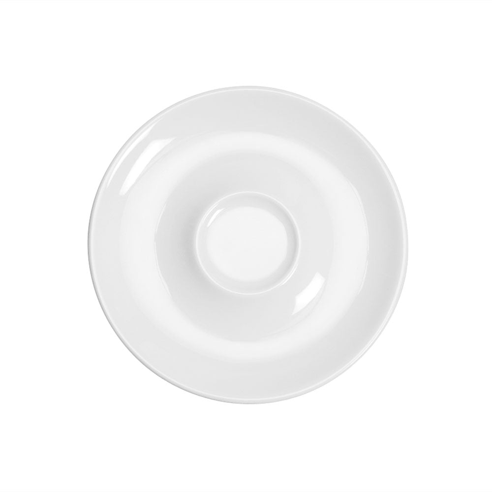 Die Espresso-Untere Bola hat einen Durchmesser von 12,5 cm. Die Aufnahme hat einen Durchmesser von 3,5 cm. Sie besteht aus feinem Hotelporzellan mit reinweißem Scherben und bester Glasur. Die Espresso-Untertasse ist sowohl spülmaschinen-, als auch mikrowellenfest.