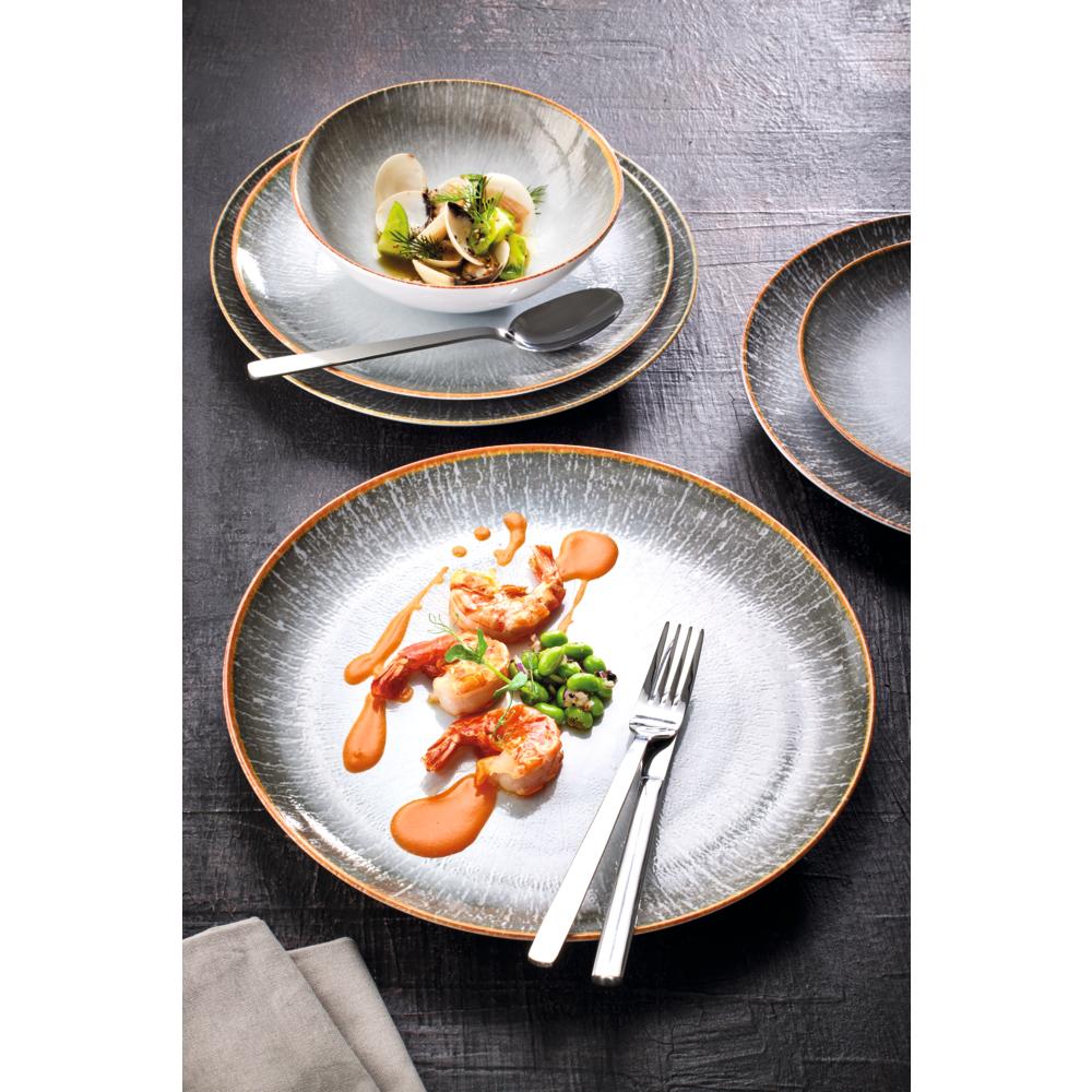 Das dezente Dekor aus der Serie CALDERA lässt Ihre Speisen im Mittelpunkt stehen und sorgt für einen natürlichen Rahmen. Mit der zum Rand hin zunehmend stärker werdenden Farbintensität, bietet die Serie aus Hotelporzellan einen perfekten Mittelpunkt für Ihre Speisenkreationen.