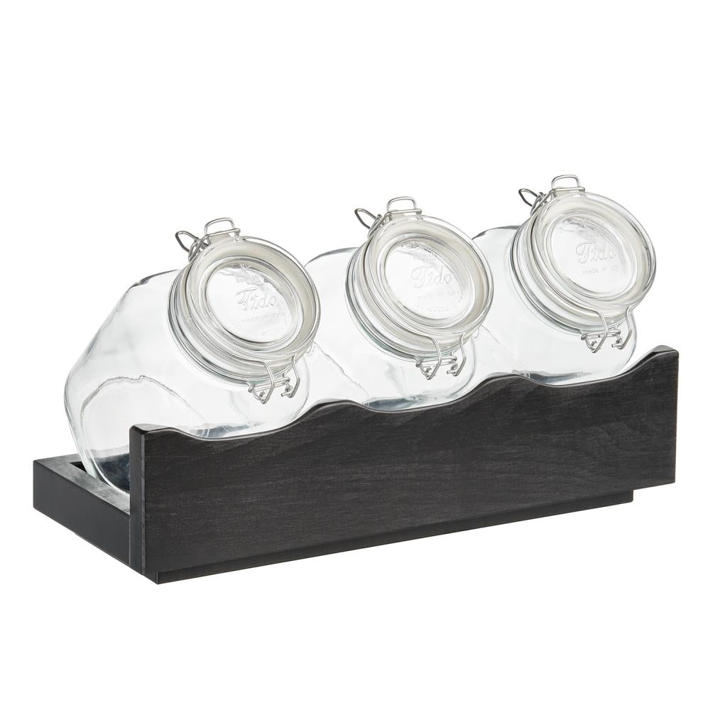 Sehr sorgfältig gefertigteCerealienbars aus lackiertem Echt-Holz,inklusive drei Bügelgläser mit luftdichtem Klappdeckel. Größe 43 x 17 x 13,5 cm, Bügelglas 12 x 12 x 22 cm - Inhalt 2 Liter.