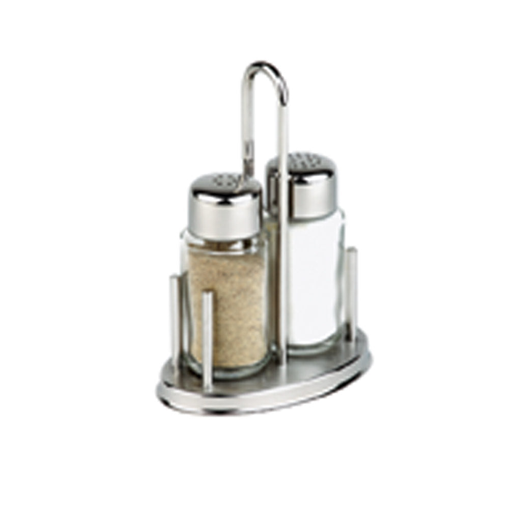 Besonders hochwertige und gut verarbeitete Menagen aus rostfreiem Chromnickelstahl 18/8. Alle Behälter sind aus spülmaschinenfestem Glas mit einem Deckel aus Edelstahl. Die Kunststoff-Ausgießer der Essig- & Öl-Flaschen (Inhalt 0,25 Liter) sind selbstverständlich tropfrei.