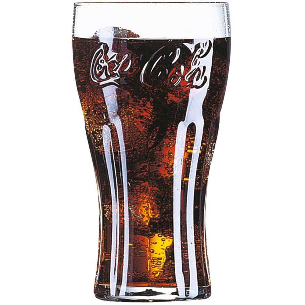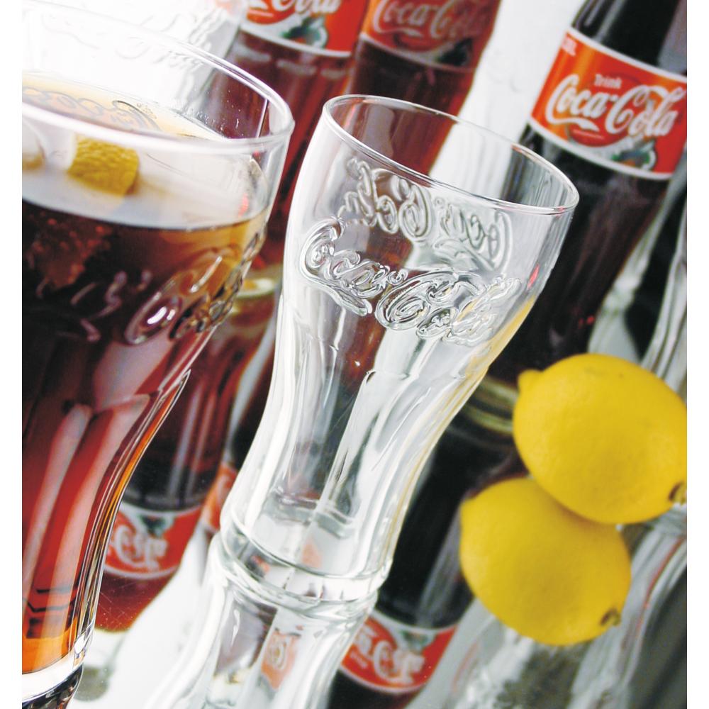Das klare Glas überzeugt durch angenehme Haptik, ist spülmaschinengeeignet und trägt das charakteristische, geprägte Coca-Cola-Logo ein stilvoller Hingucker bei jedem Getränk.