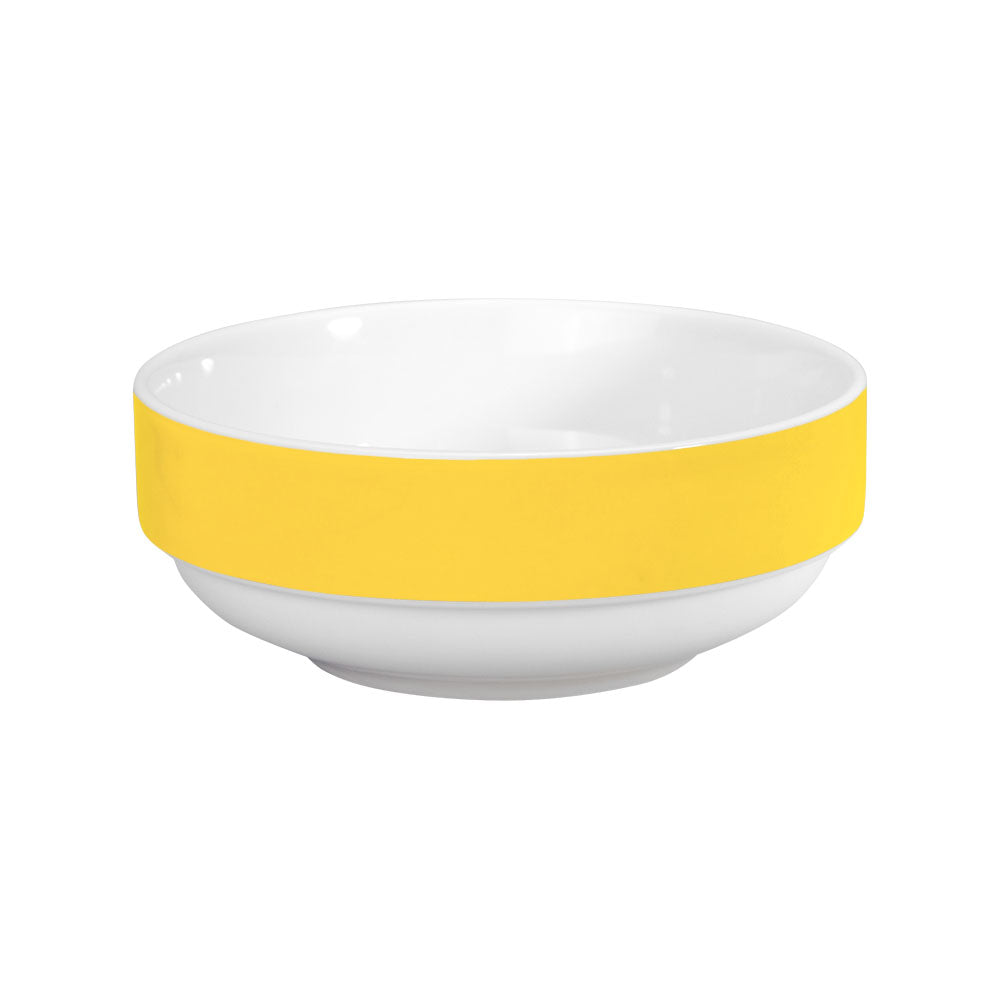 Die COLOURS  Schale in Gelb (Ø 12 cm, Höhe 5 cm, Inhalt 30 cl) ist vielseitig einsetzbar ob für Desserts, Beilagen, Müsli oder kleine Salate. Mit ihrer kompakten Form und verstärkten Rändern ist sie besonders stabil, spülmaschinen- und mikrowellengeeignet sowie platzsparend stapelbar. Die Schale sorgt für praktische Handhabung und bietet zudem eine 10-jährige Nachkaufgarantie, um langfristige Verfügbarkeit zu sichern.