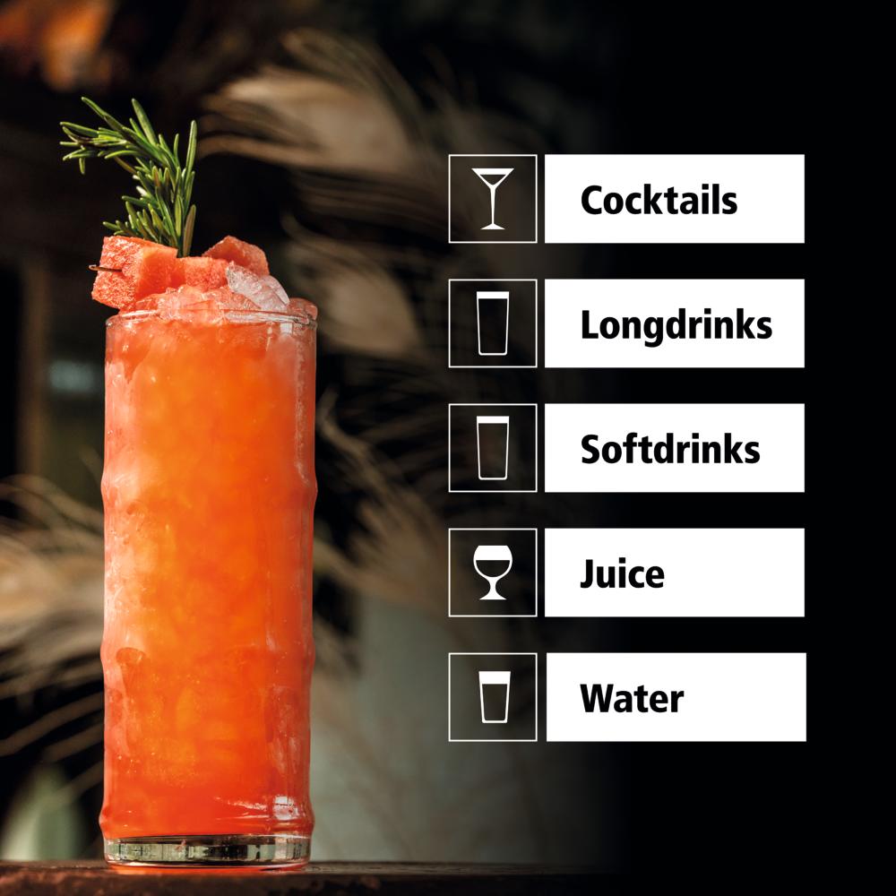 - Vielseitig einsetzbar für Softdrinks, Wasser & Cocktails