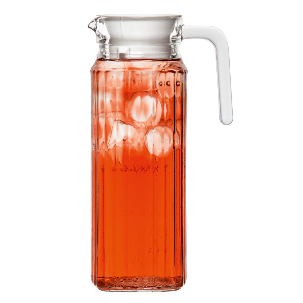 Preisgünstige und robuste Alternative, schlicht der ideale Krug für den Gebrauch in der Gemeinschaftsverpflegung. Aus spülmaschinenfestem Glas, inkl. Klemmdeckel aus Kunststoff. Mit seinen Abmessungen passt er in die Seitenfächer von handelsüblichen Kühlschränken.