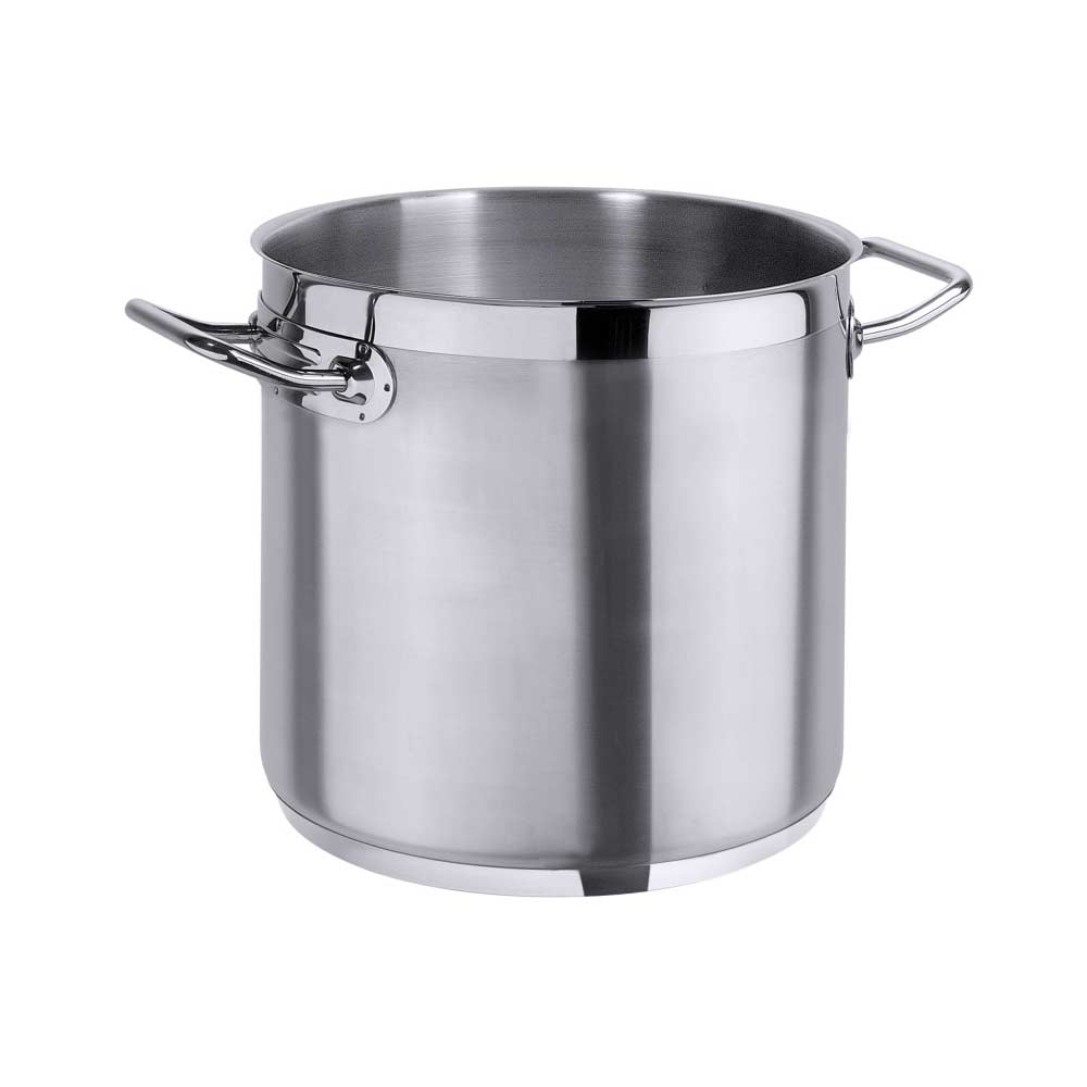 Suppentopf der Serie "Cuisine". Aus rostfreiem Chromnickelstahl 18/10. Mittelschwere, stabile Qualität. Hitzebeständig, langlebig und spülmaschinenfest. Inhalt 10 Liter - Ø 24 x 25 cm.