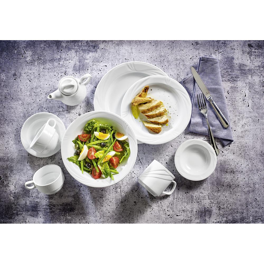 Die Reihe Diana zeichnet sich aus durch robustes und preiswertes Hotelporzellan in universellem Reinweiß mit zartem Reliefdesign.