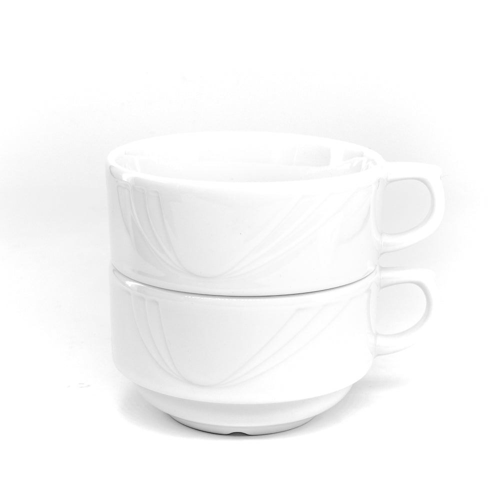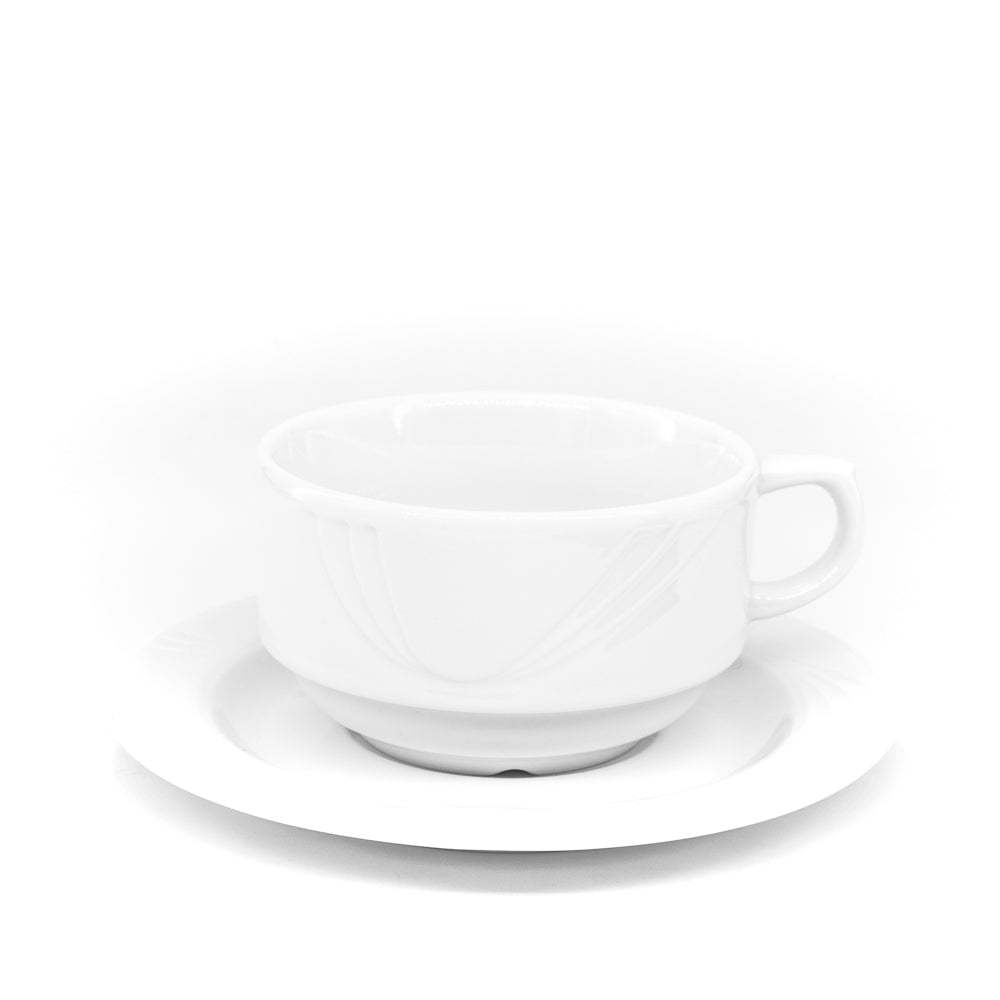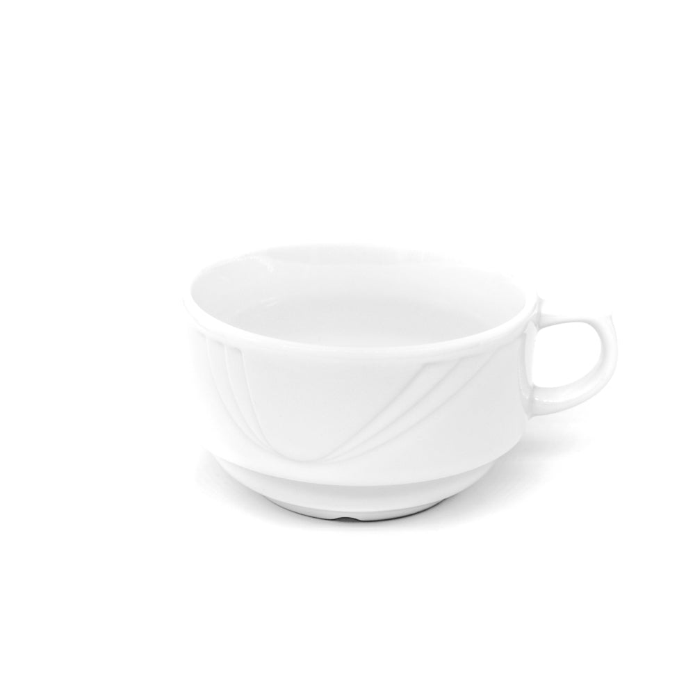 Die Reihe Diana zeichnet sich aus durch robustes und preiswertes Hotelporzellan in universellem Reinweiß mit zartem Reliefdesign.