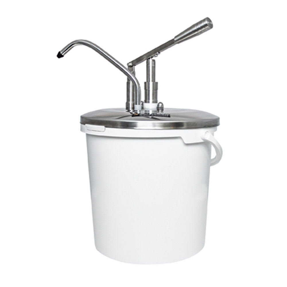 Hochwertige Spender mit kräfteschonender Hebel- Bedienung. Für exaktes, problemloses Dosieren von Ketchup, Senf, Mayonnaise, Dressings, Marmeladen und Saucen. Mit einstellbarer Hubmenge (max. 40 ml) und schwenkbarem Auslauf. Pumpsystem komplett zerlegbar und leicht zu reinigen. Lieferung mit nahtlos tiefgezogenem Behälter aus rostfreiem Chromnickelstahl 18/10 oder PP-Kunststoff-Eimer.