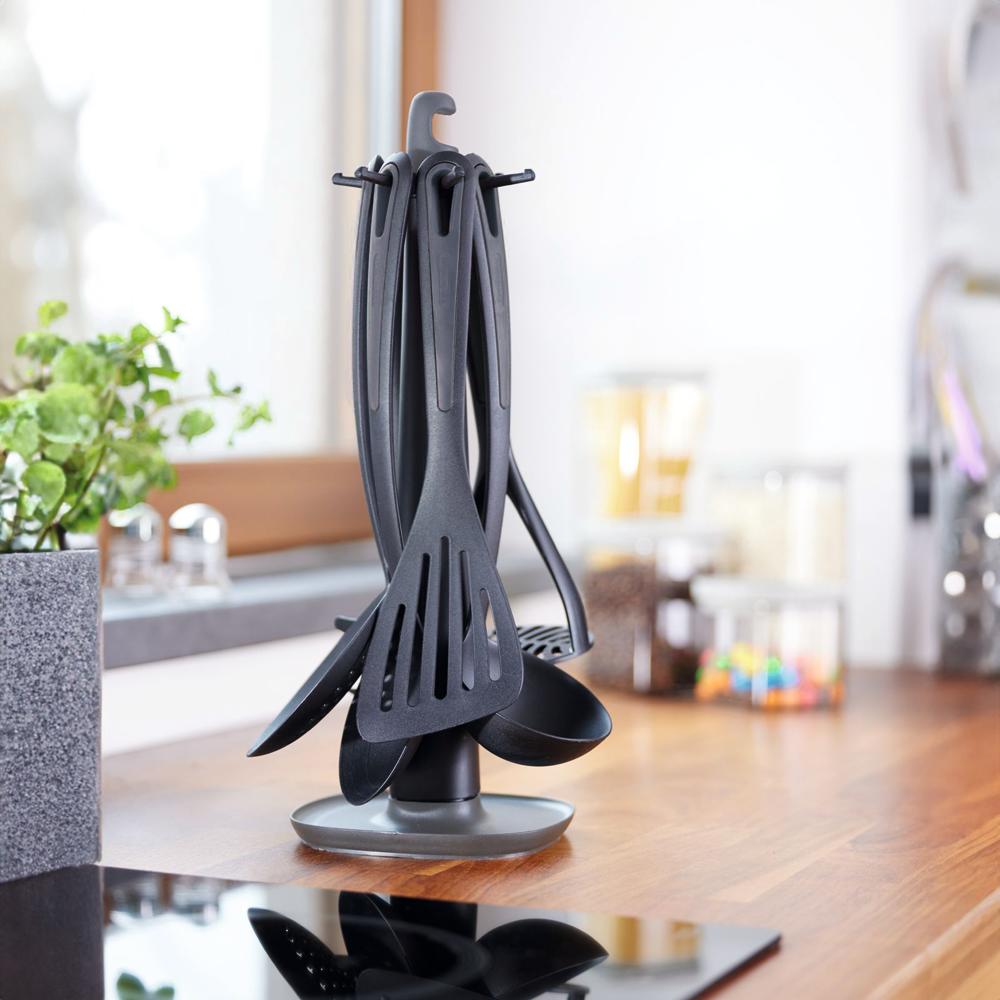 Mehr Ordnung und Stil für Ihre Küche: Das 7-teilige Küchenhelfer-Set mit drehbarem Ständer hält alle wichtigen Utensilien stets griffbereit. Der kompakte Ständer mit 6 Armen organisiert Ihre Küchenhelfer übersichtlich und ermöglicht dank Drehfunktion schnellen Zugriff ideal beim Kochen, Servieren und Anrichten.
