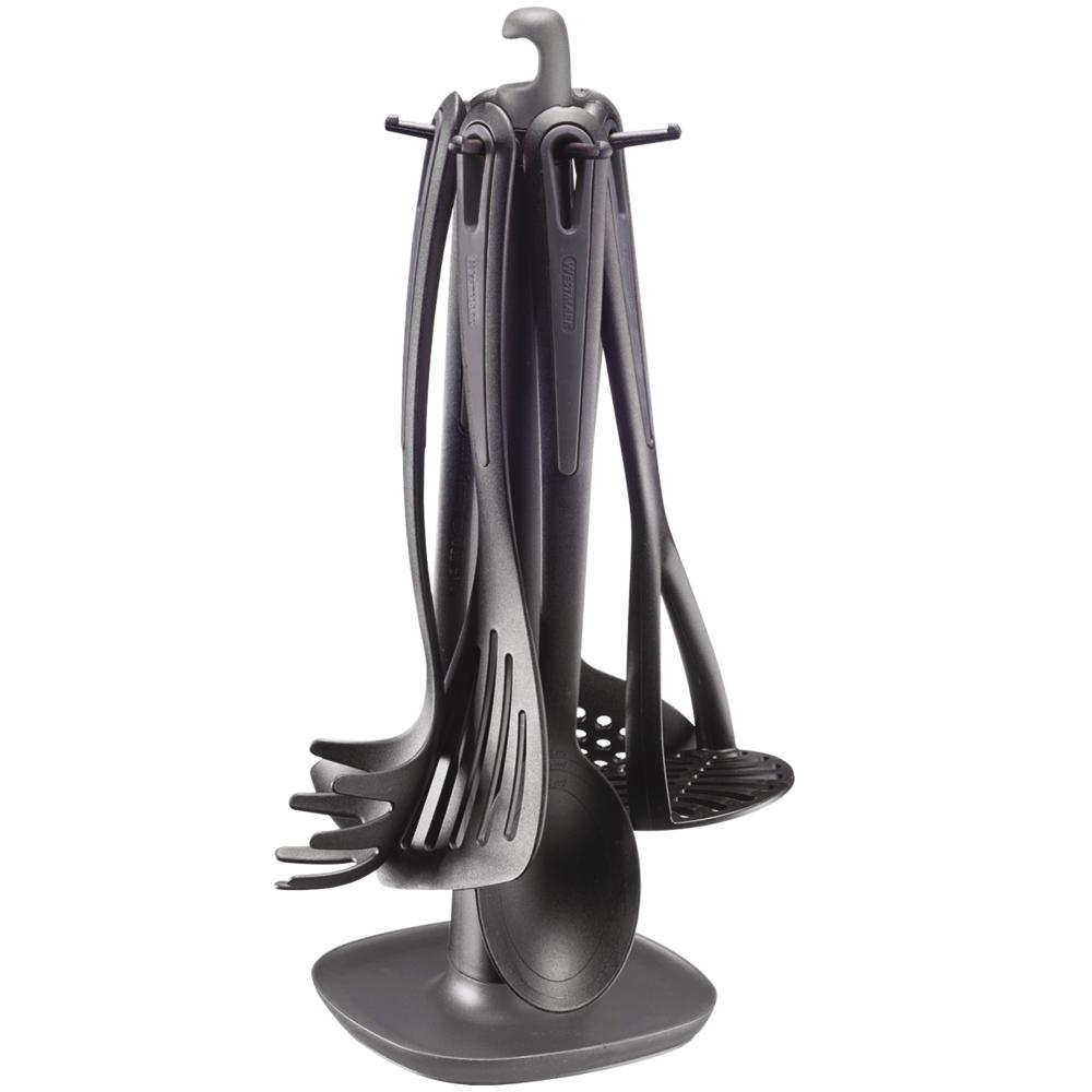 Inklusive 6 Küchenwerkzeuge: Kartoffelstampfer, Brat-/Gemüselöffel, Spaghettilöffel, Suppenkelle, Schaumlöffel & Pfannenwender