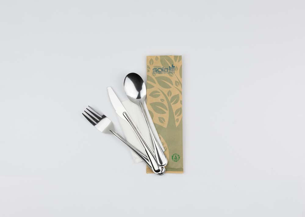 - Einweg Menülöffel, Menügabel, Menümesser aus Chromstahl 18/0 & Serviette