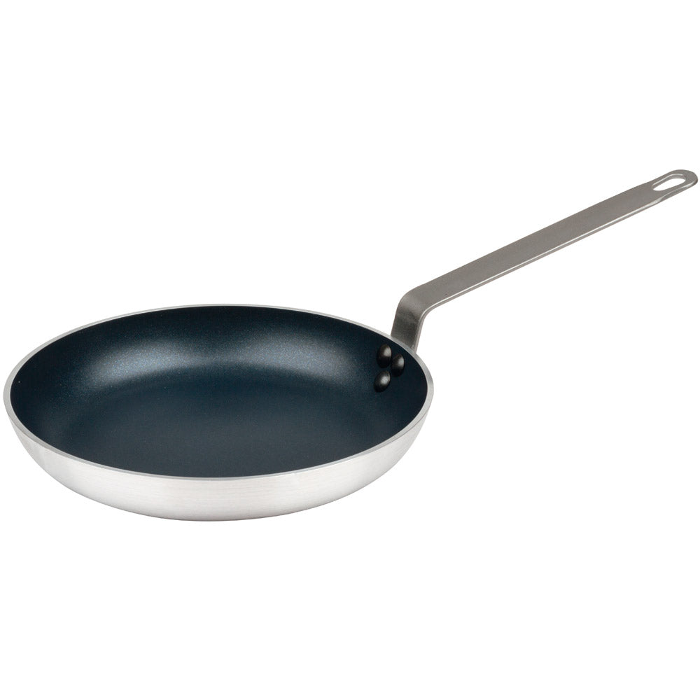 Aus 3,5-4 mm starkem Aluminium mit dreifacher QuanTanium-Antihaftbeschichtung und einem zweifach genieteten Flachstiel. Temperaturbeständig bis 220 ° C. Geeignet für alle Herdarten - außer Induktion.