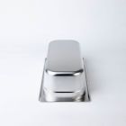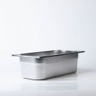 Gastro-Speisenbehälter aus rostfreiem Edelstahl in genormten Größen. Preisgünstige Qualität mit Stapelnocke. Hitzebeständig, robust und spülmaschinenfest. Zum Einsetzen in einen GN 1/1 Rahmen werden für Behälter der Größe 1/4 und 1/6 Zwischenstege benötigt. Nicht kompatibel zu Behältern und Deckeln unserer Serien "Cuisine", "Rieber" und "Smart Line"!
