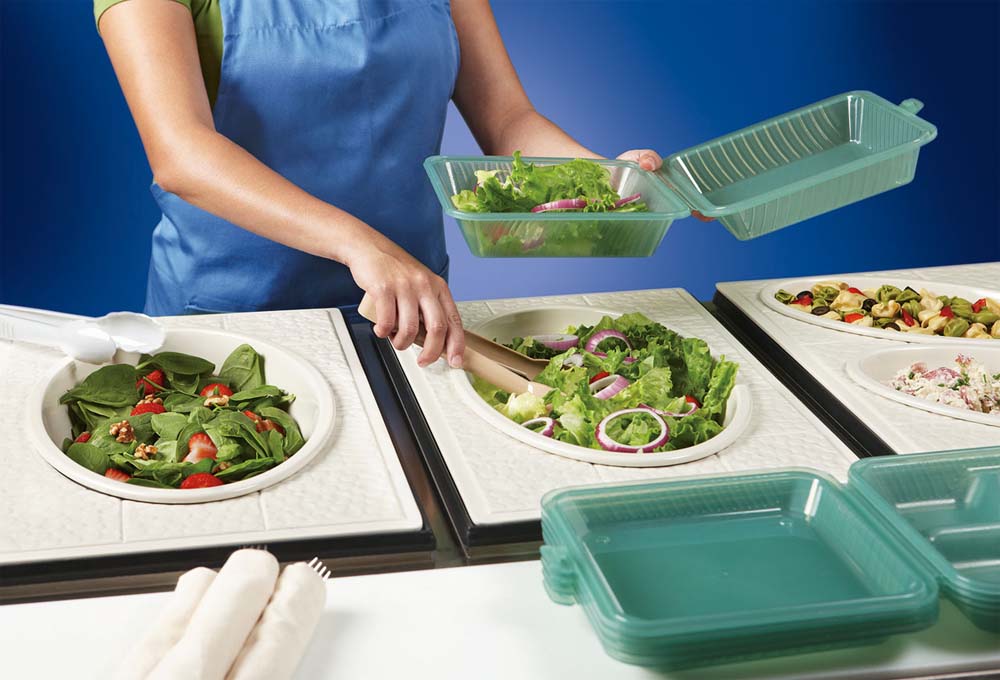 Umweltfreundliche Mehrweg-Speisenverpackungen mit dichtschließendem Deckel. Aus BPA-freiem Polypropylen-Kunststoff - stabil, stapelbar und spülmaschinenfest. Verstärken Sie Ihr To-Go-Geschäft oder etablieren Sie ein eigenes Mehrwegsystem. Kontaktieren Sie uns zwecks individueller Bedruckung mit Ihrem Logo.