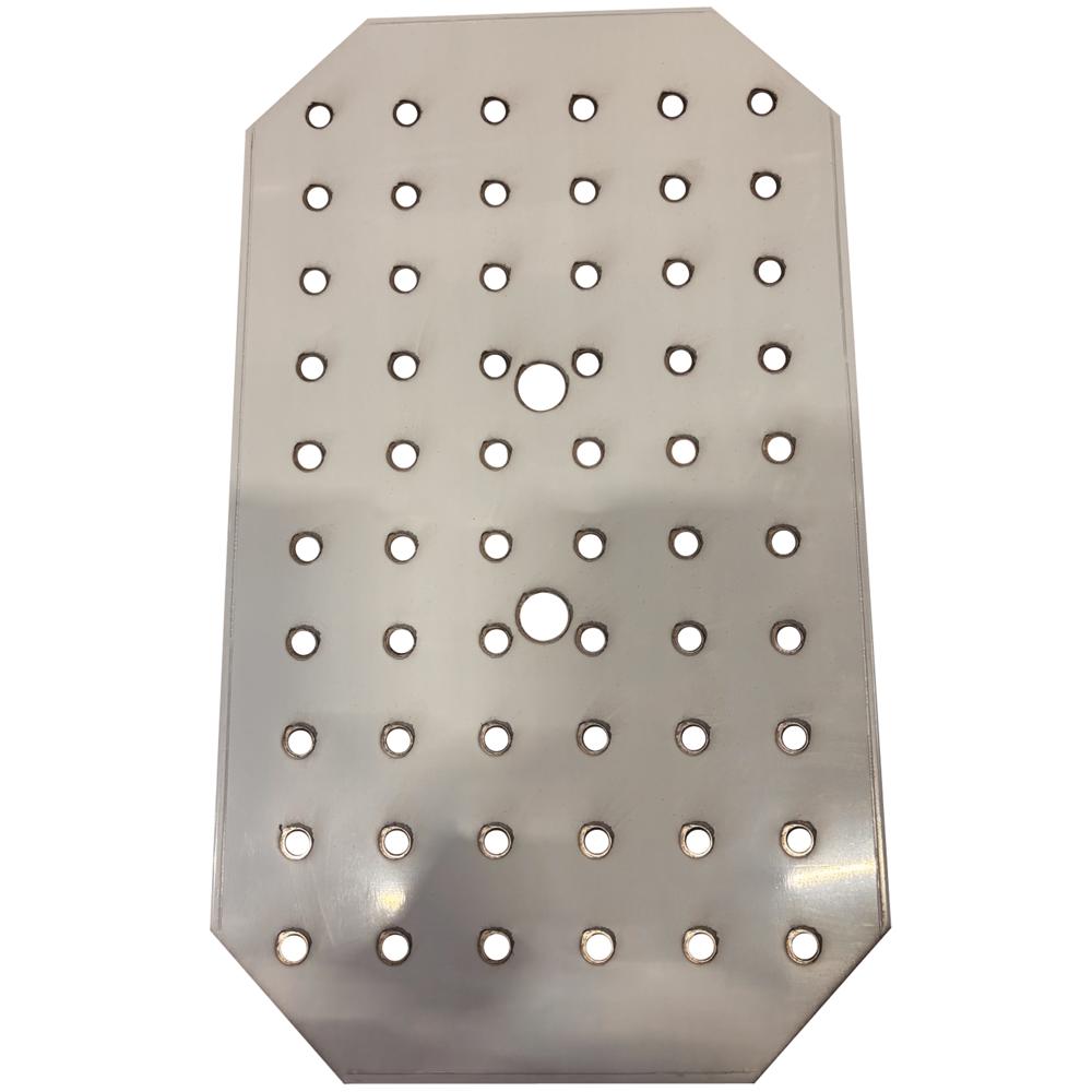 Gelochte, abgekantete Platten. Für Behälter bis 100 mm Tiefe. Aus hochglanzpoliertem Chromnickelstahl 18/10, rostfrei und spülmaschinenfest.