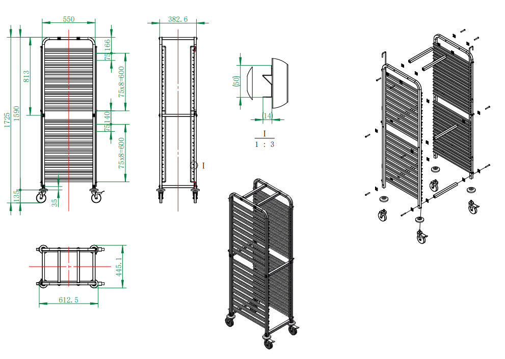 - Ideal geeignet zum Transportieren von Tabletts und EN Behältern in Großküchen, Betriebsrestaurants und Mensen