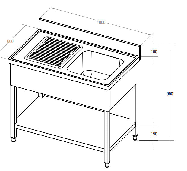 ECOLINE Spültisch 1000x600 mm mit 1 Becken rechts