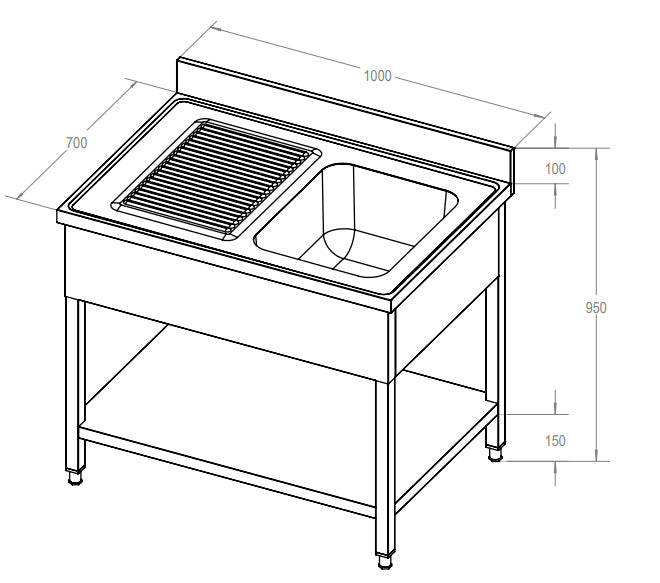 ECOLINE Spültisch 1000x700 mm mit 1 Becken rechts