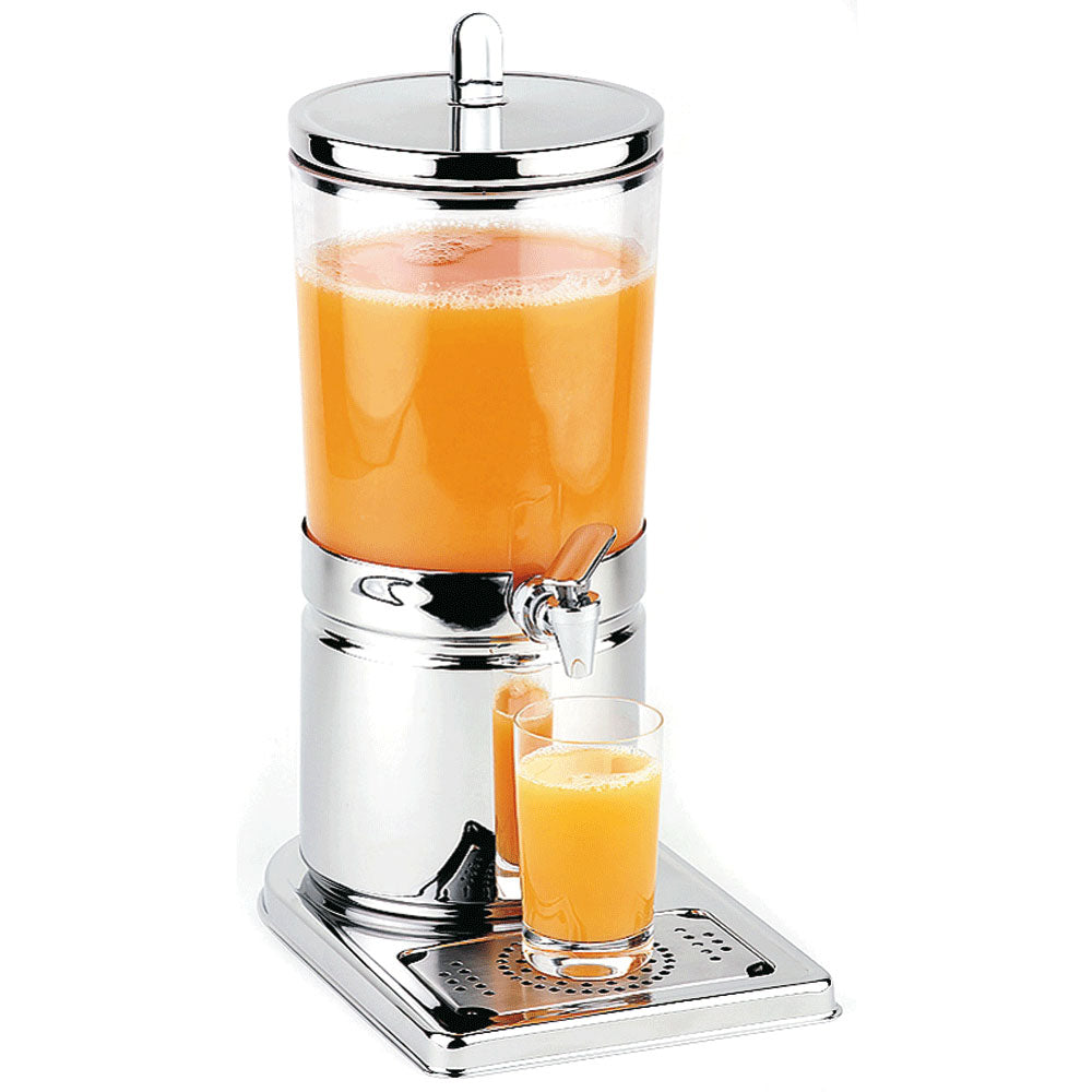 spülmaschinenfestem SAN-Kunststoff-Behälter Deckel aus hochglanzpoliertem Edelstahl Kühlakku in Deckel und Standfuß hartverchromter, tropffreier Zapfhahn Standfuß aus poliertem Edelstahl Bodenplatte aus poliertem Edelstahl Das Frühstücksbuffet glänzt in hochpoliertem Edelstahl in Kombination mit edlem, satiniertem Acryl. Hygienisch einwandfrei für den hohen Anspruch am Buffet, ausgestattet mit allen Annehmlichkeiten für Gast und Personal. In der Linie "Elegant" erhalten Sie: Saft- und Milchkannen in zwei Designs, Müslispender, Saft- und Müsliflöten, Konfitürenbar, Frischeschalen und -platten.