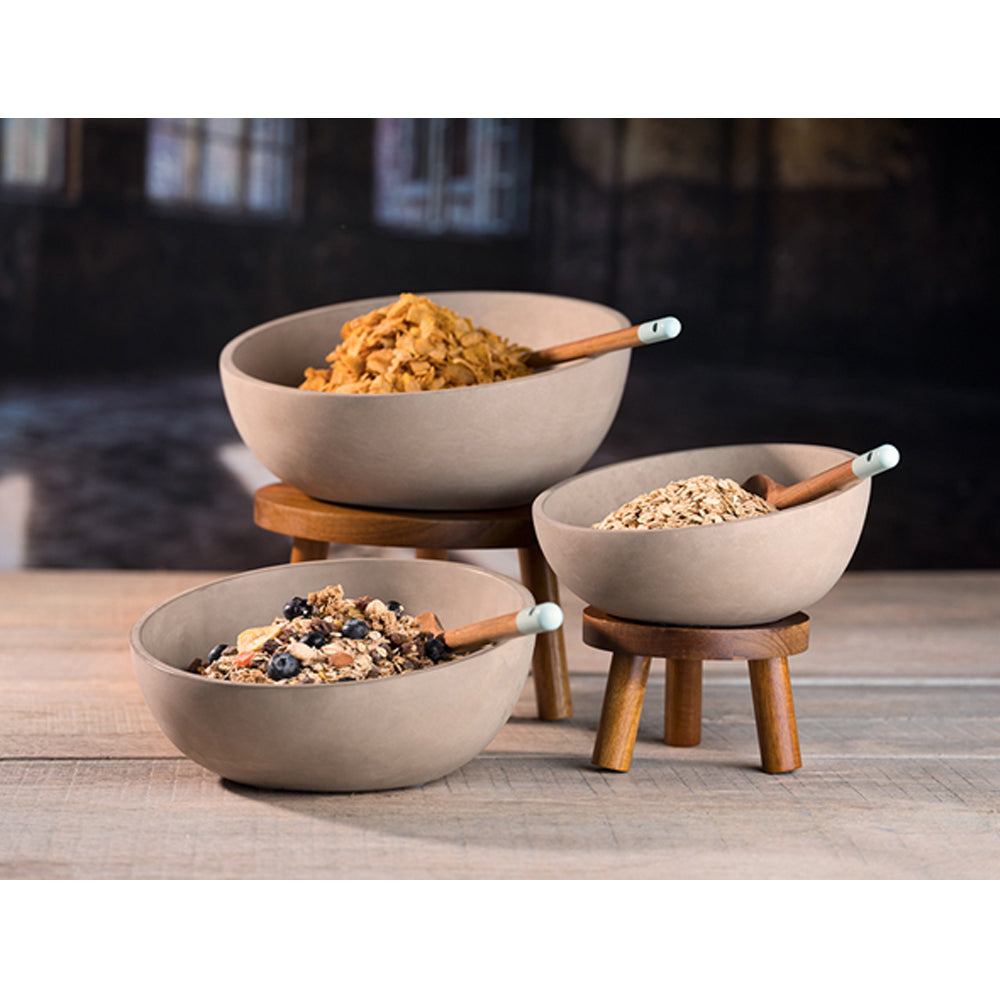 Sehr stabile Buffetständer aus lackiertem Akazienholz, deswegen auch ideal geeignet für schwere Schüsseln, zum Beispiel aus dem angesagten Material Beton. Tragkraft jeweils ca. 15 kg.