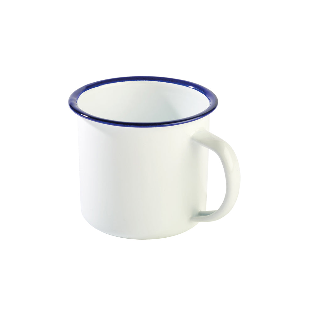 Der Henkelbecher Enamel hat bei den Maßen Ø 9 x 8 cm ein Volumen von 0,35 l. Er bietet sich hervorragend für den morgendlichen Kaffee, Kakao oder Tee im Restaurant oder am Hotelbuffet an und sorgt für eine vertraute Atmosphäre.