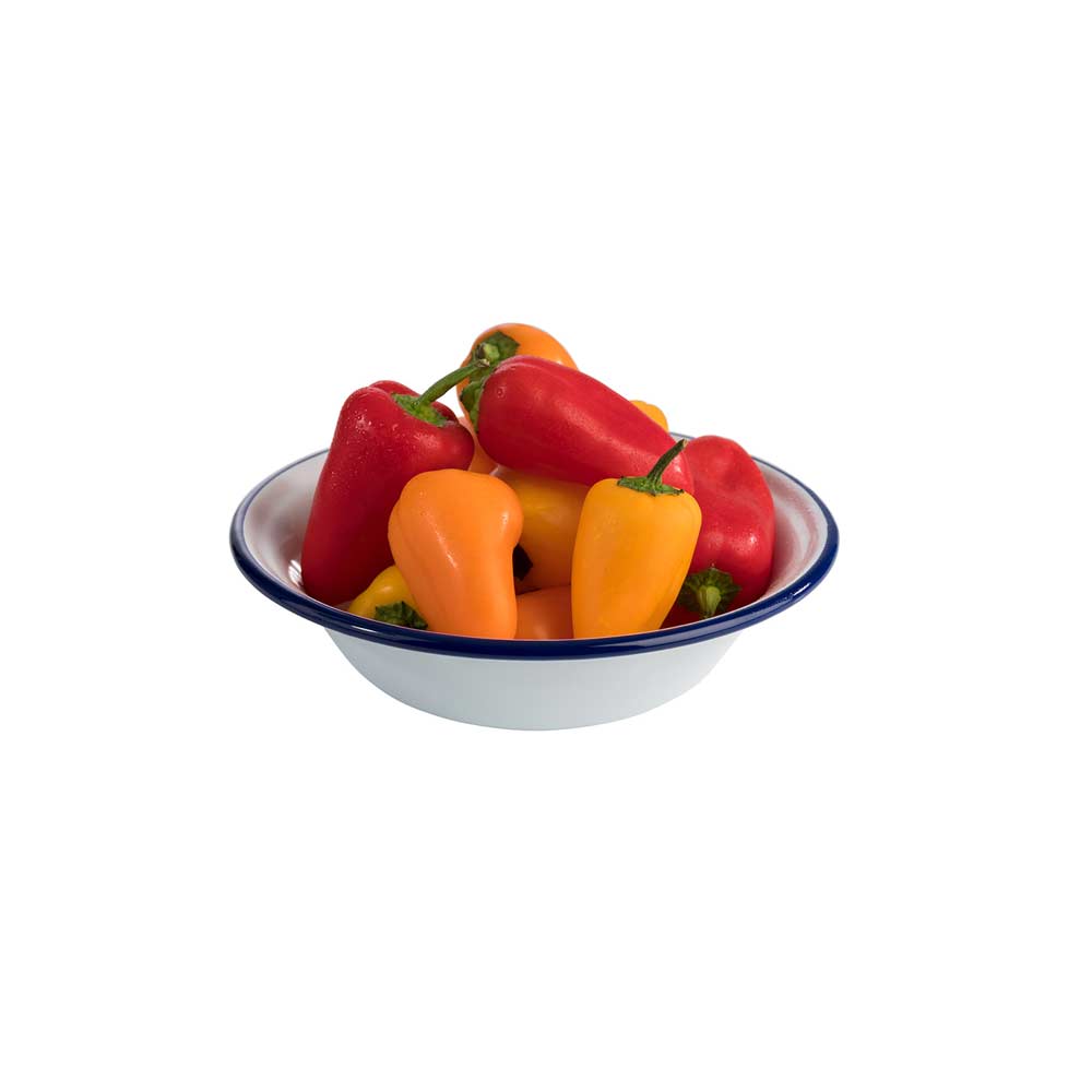 Absolut angesagtes Geschirr im Retro-Look mit dem ganz typischen dunkelblauen Rand. So wirken Ihre Speisen garantiert, als hätte Oma sie mit ganz viel Liebe zubereitet. Bei dem Material handelt es sich hierbei um spülmaschinenfestes, emailliertes Stahlblech. Das Besondere an der Emaille ist, dass es nicht nur ein korrosionsbeständiger, sondern auch geschmacksneutraler Überzug ist. Das Geschirr ist hitzebeständig bis 80° C und deswegen nicht für den Ofen geeignet.