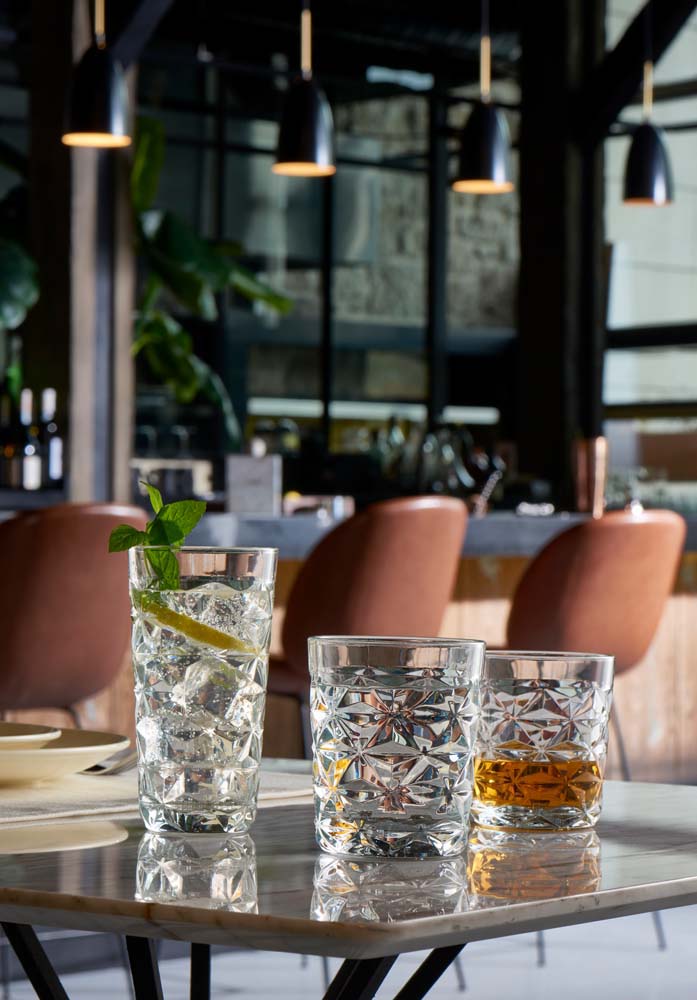 Die Gläser der Serie " Estrella" aus dem Hause Pasabahce überzeugen durch ein einzigartiges Design, das sich durch ein geometrisches Muster auszeichnet. Sie haben eine hochwertige Qualität und sind ein echter Hingucker auf jeden gedeckten Tisch.