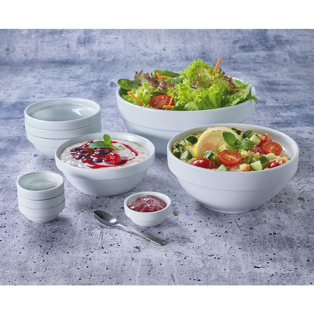 Schüsseln haben viele Anwendungsmöglichkeiten. Sie können für Beilagen, Nachtisch oder für Salate verwendet werden. Mit einem Fassungsvermögen von 27 cl und einem Durchmesser von 12,2 x 4,7 cm eignet sich diese gut für kleinere Portionen.
